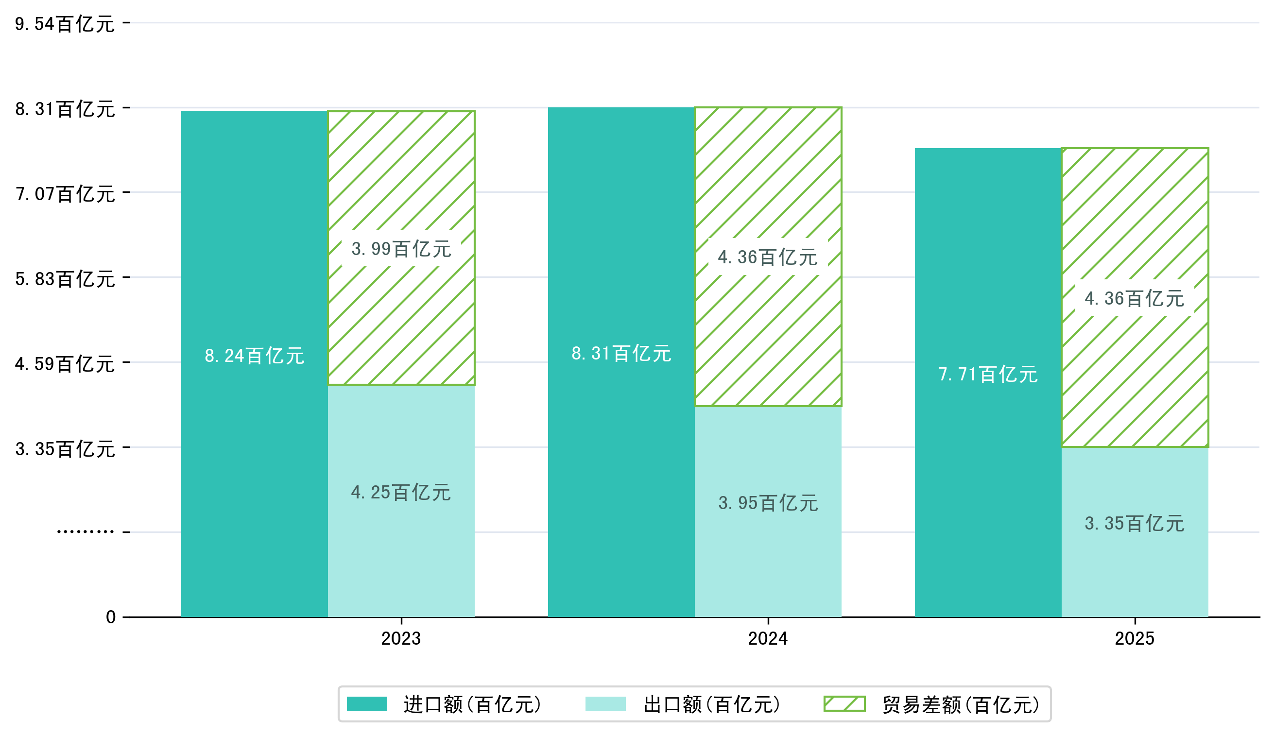 以人民币计,2025年1-10月唐山市贸易差额为435,9527,2307万元(贸易逆差),相比上年同期增加了521,1917万元,同比增加-0.01%。