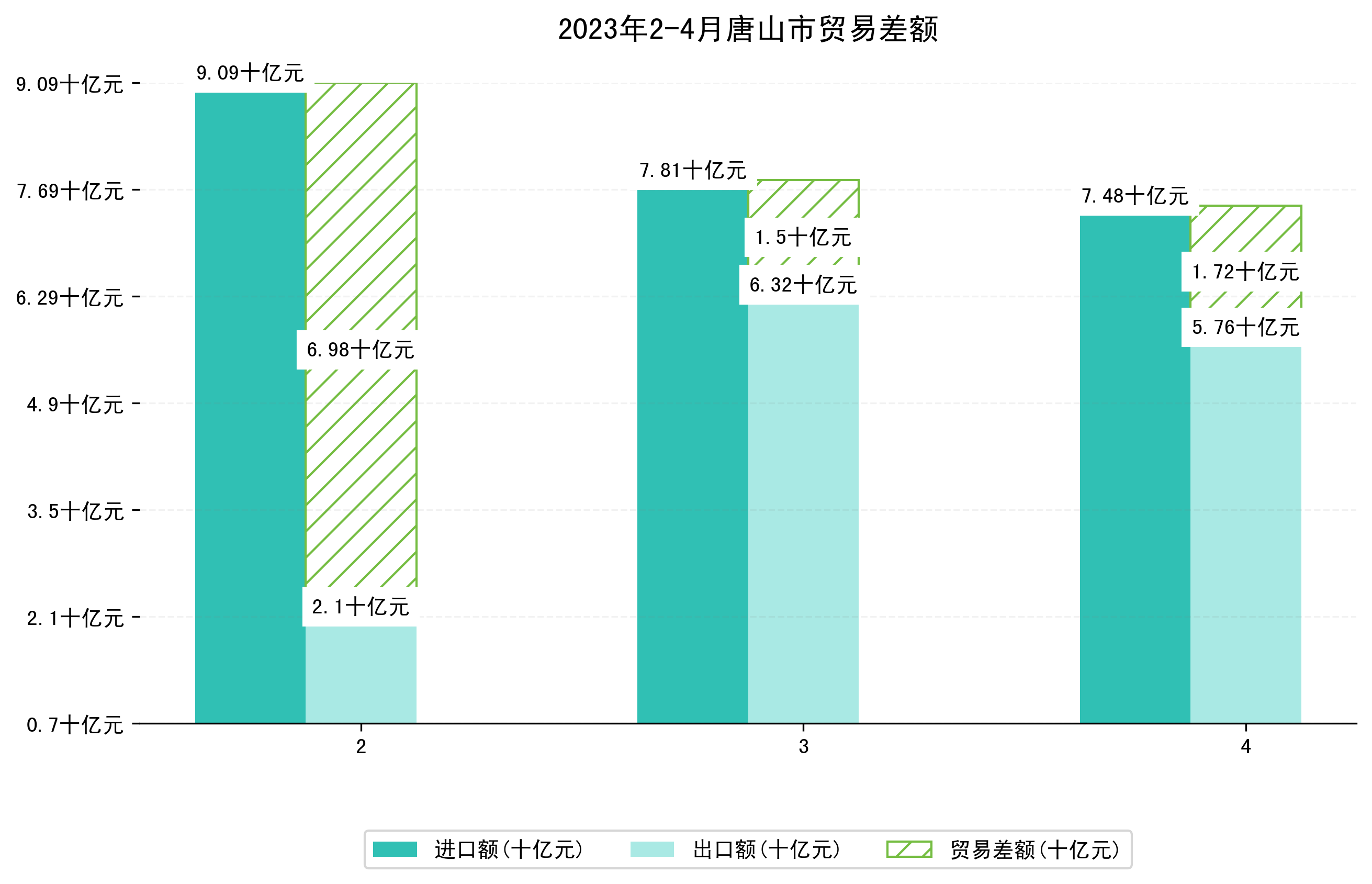 (图一:2023年2-4月唐山市进出口总额)