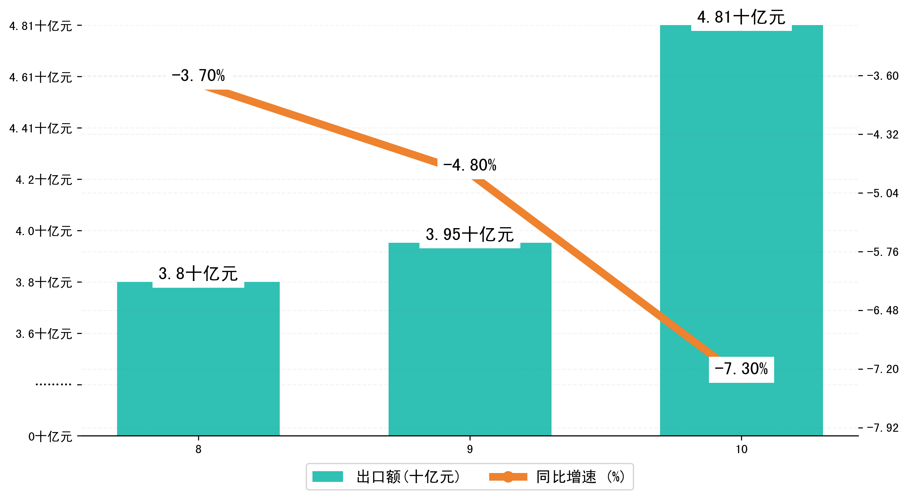 (图二:2024年8-10月唐山市出口额)