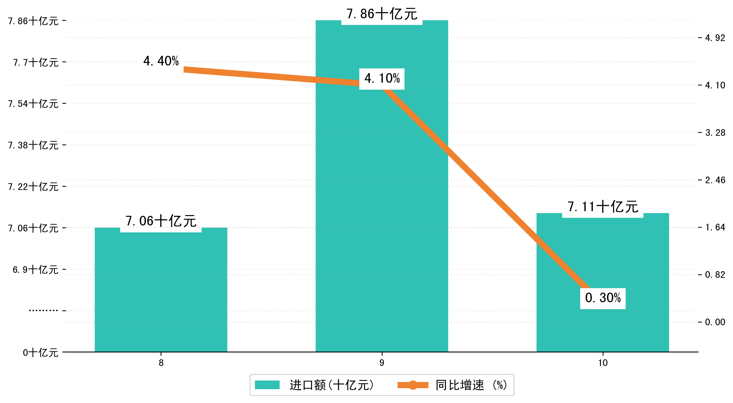 (图三:2024年8-10月唐山市进口额)