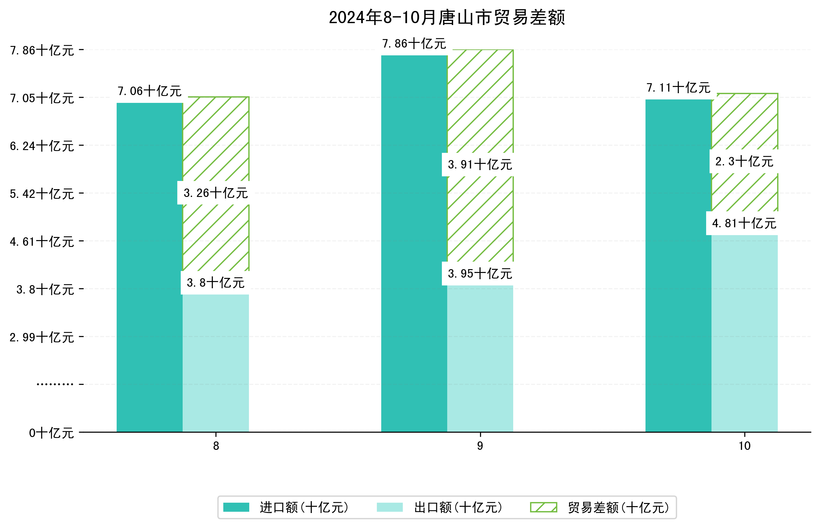 (图一:2024年8-10月唐山市进出口总额)