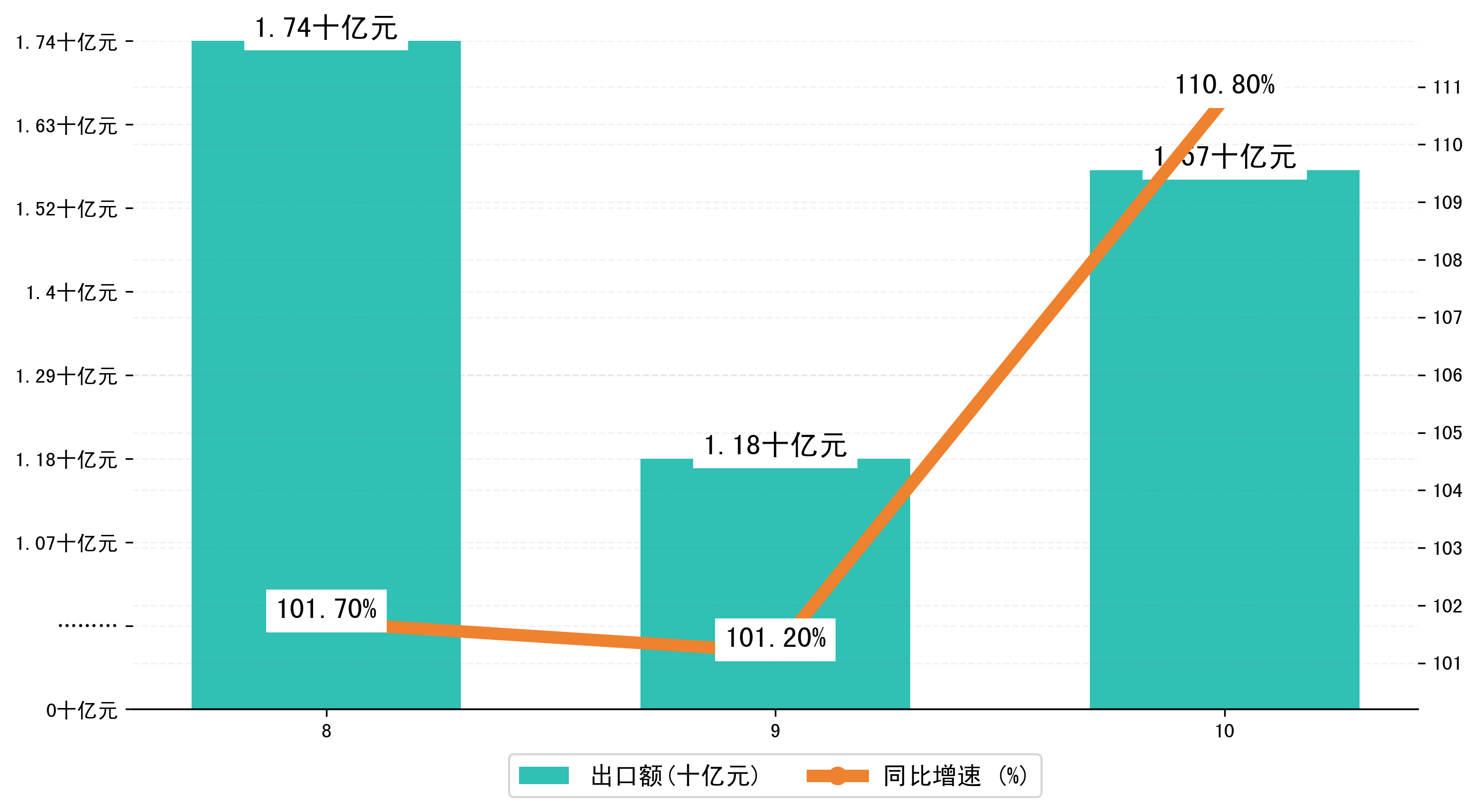 (图二:2024年8-10月铜陵市出口额)