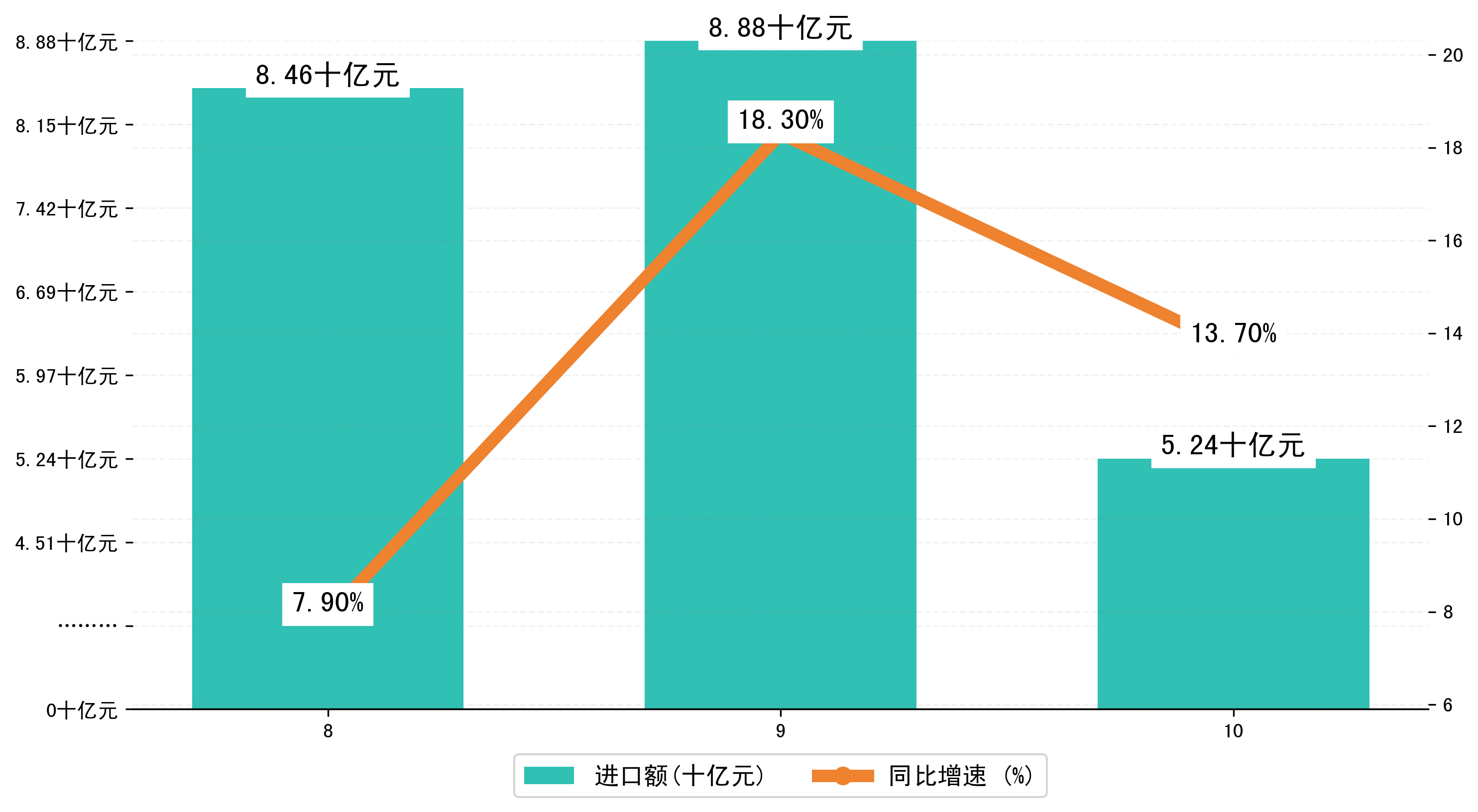 (图三:2024年8-10月铜陵市进口额)