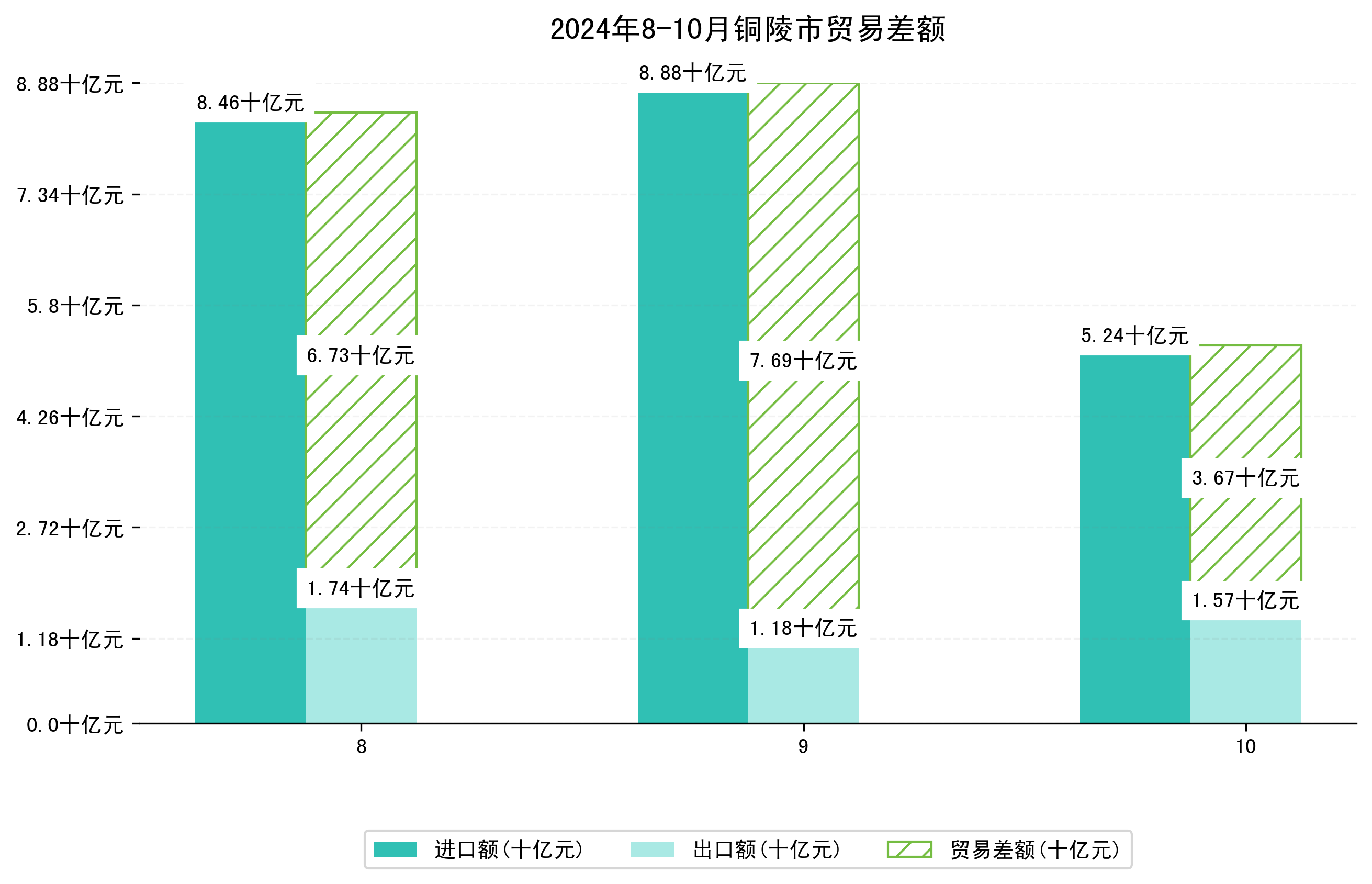 (图四:2024年8-10月铜陵市贸易差额)
