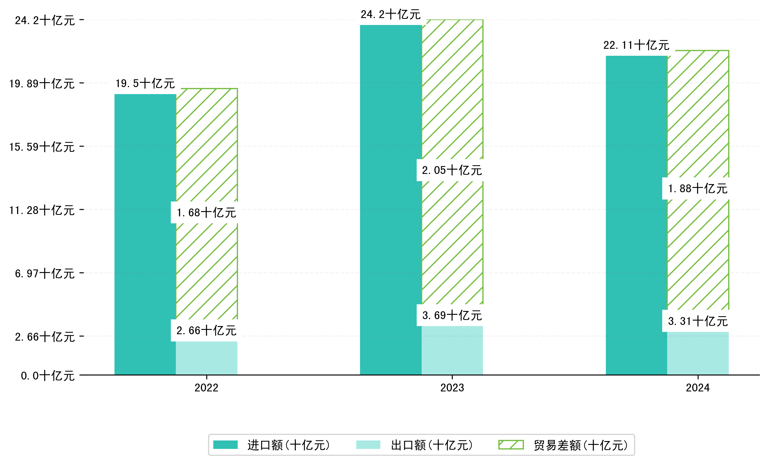 以人民币计,2024年1-4月铜陵市贸易差额为187,9999,3912万元(贸易逆差),相比上年同期增加了17,1129,5162万元,同比增加-8.34%。
