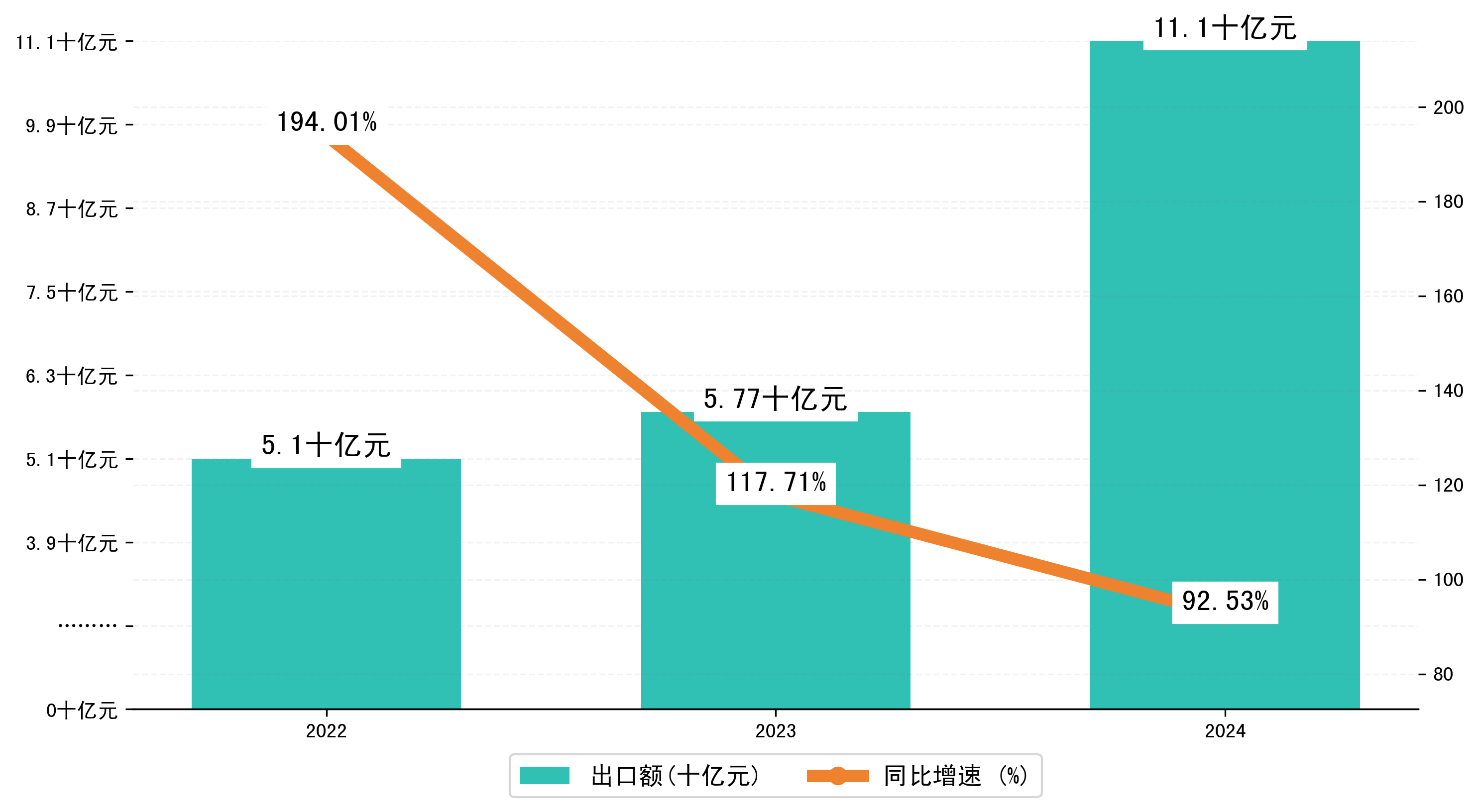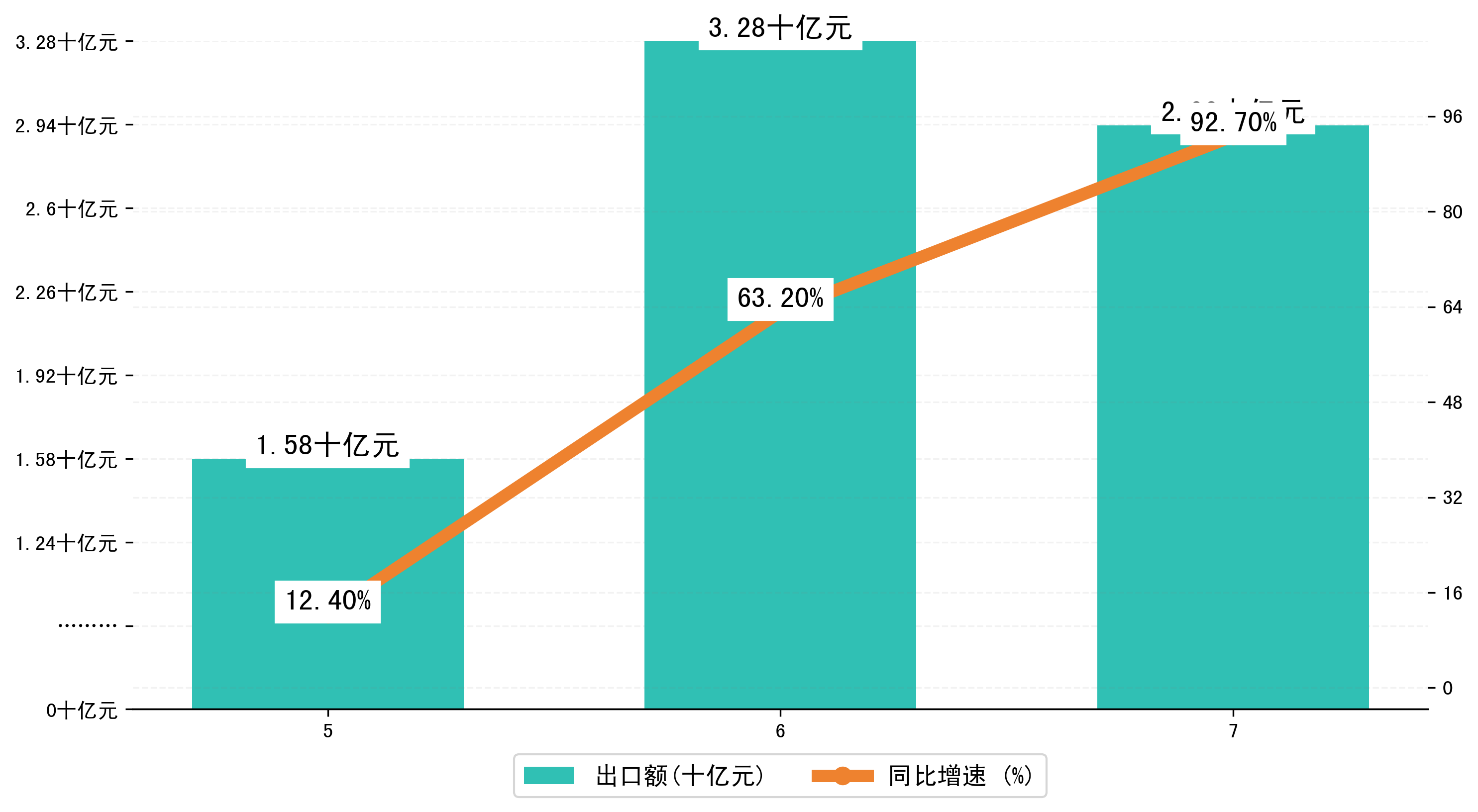 以人民币计,2024年1-7月铜陵市出口额为110,9982.7279万元,相比上年同期增加了53,3446.1735万元,同比增加了92.70%。