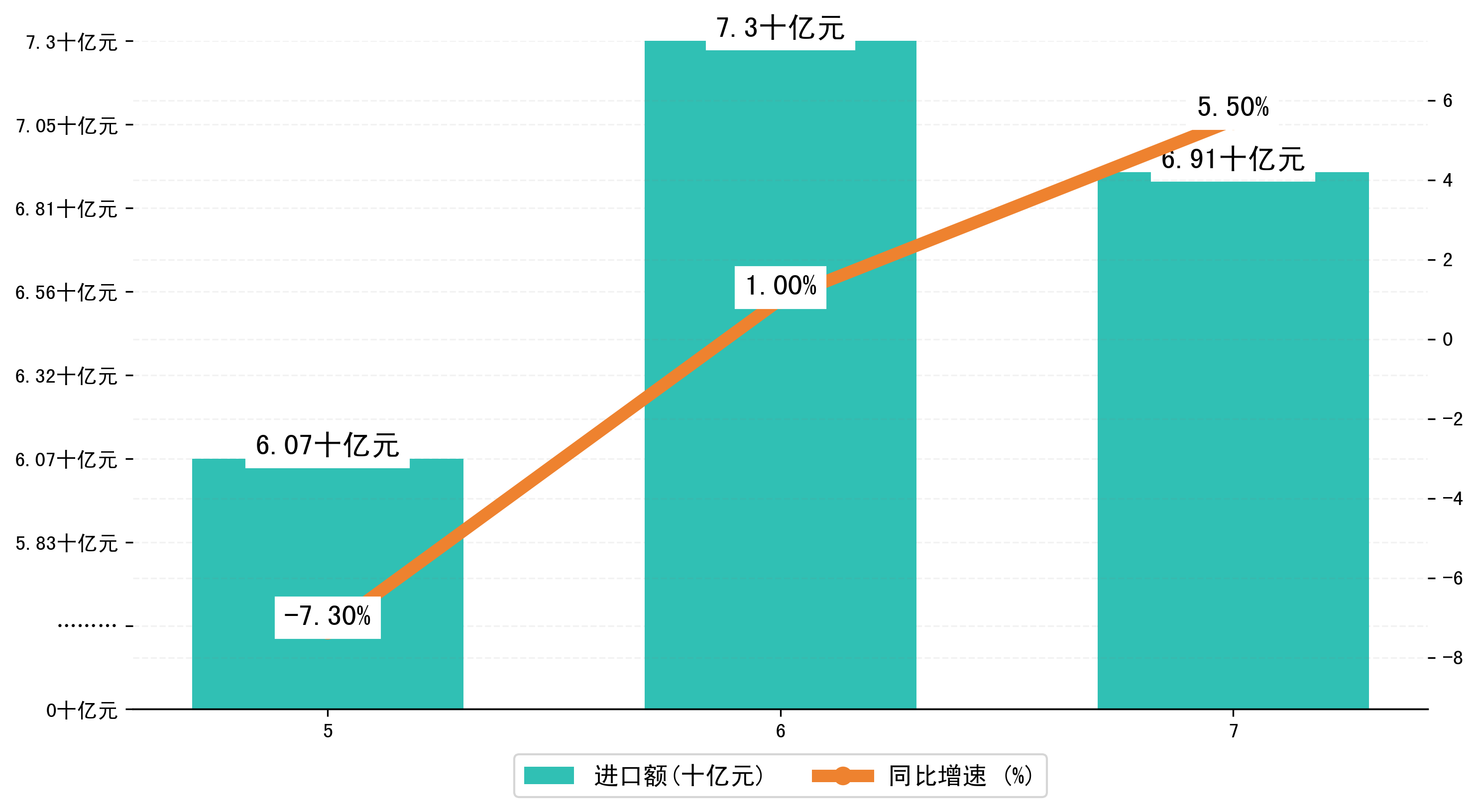 以人民币计,2024年7月铜陵市进口额为69,1324.9897万元,相比上月减少了3,8697.0144万元;相比上年同期增加了12,7089.27万元,同比增加了5.50%。