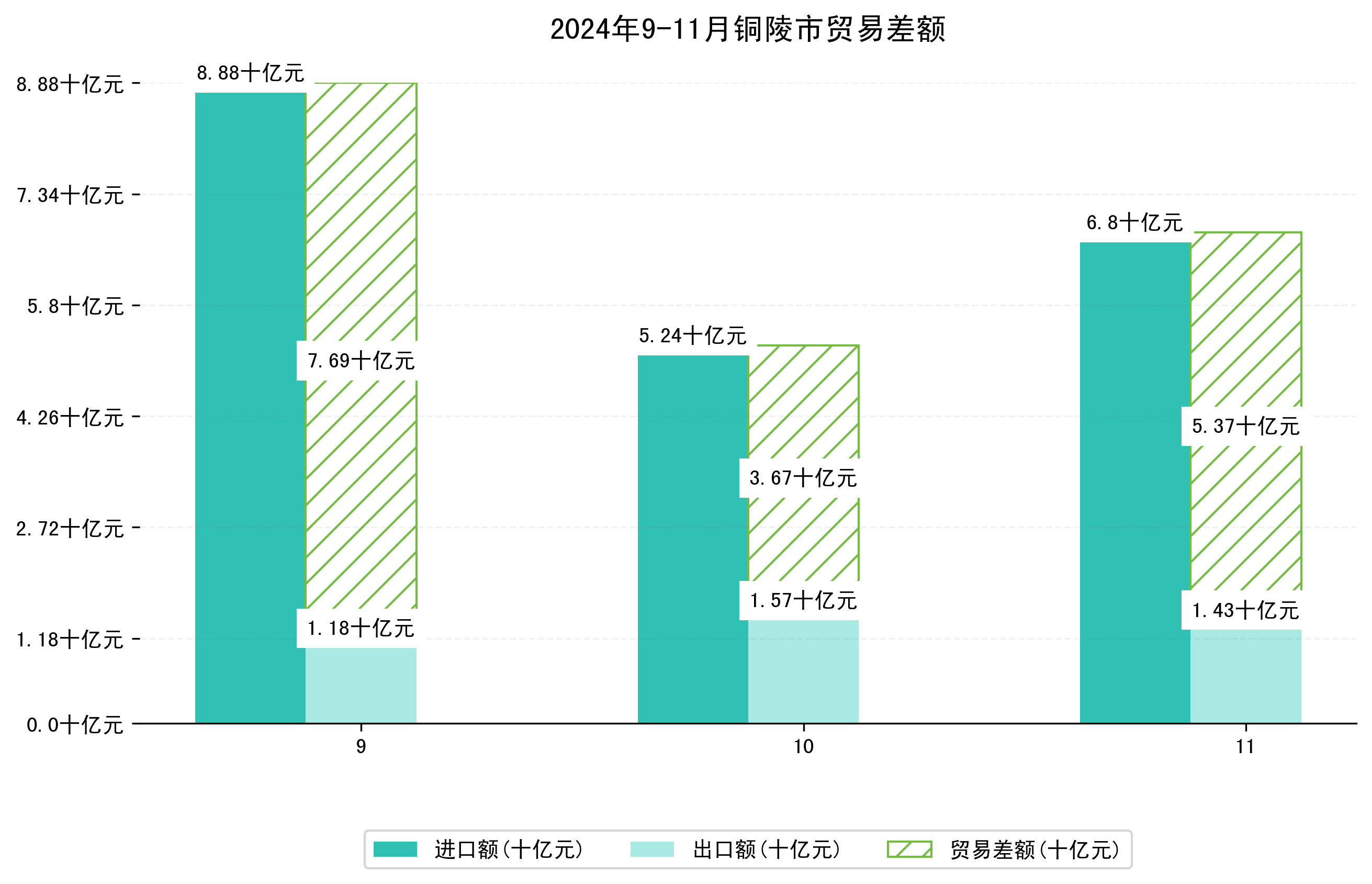 2024年11月铜陵市进出口总额及进出口差额统计分析