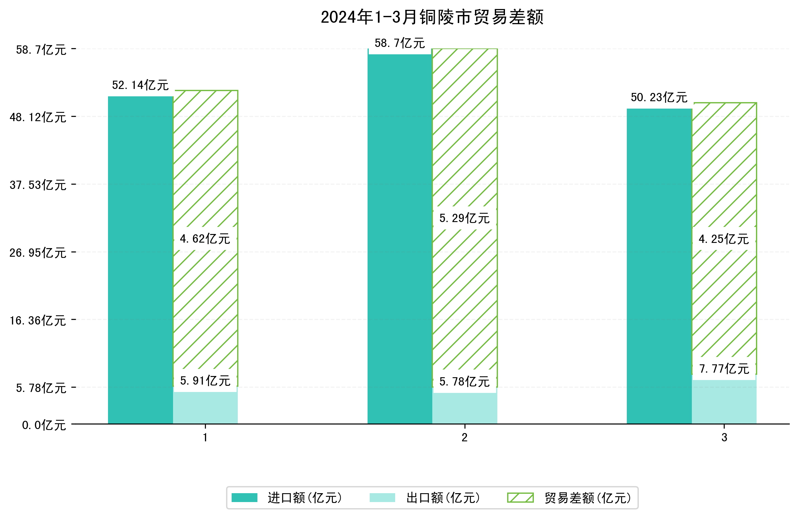2024年3月铜陵市进出口总额及进出口差额统计分析