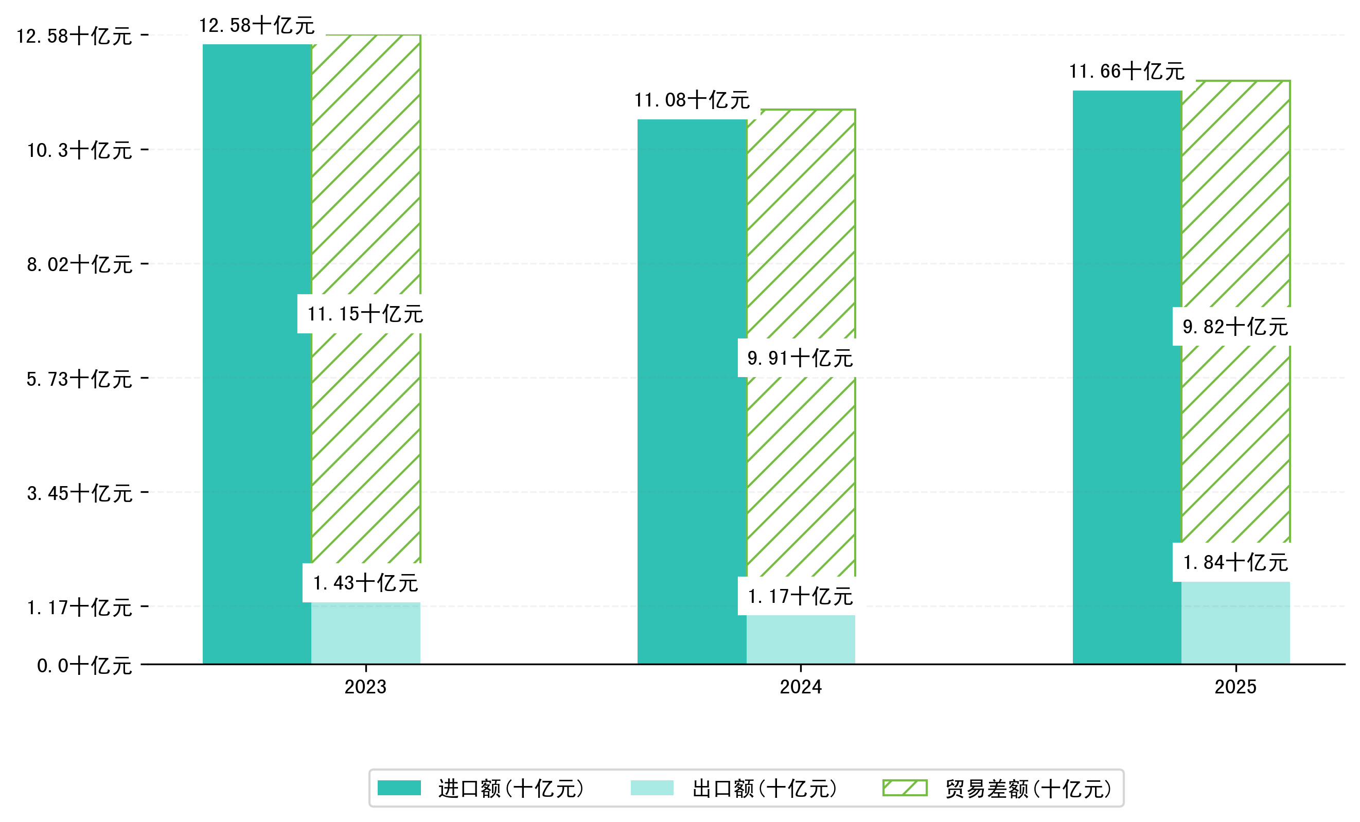 以美元计,2025年1-2月铜陵市贸易差额为13,6592,9252万美元(贸易逆差),相比上年同期增加了2835,5649万美元,同比增加-2.03%。