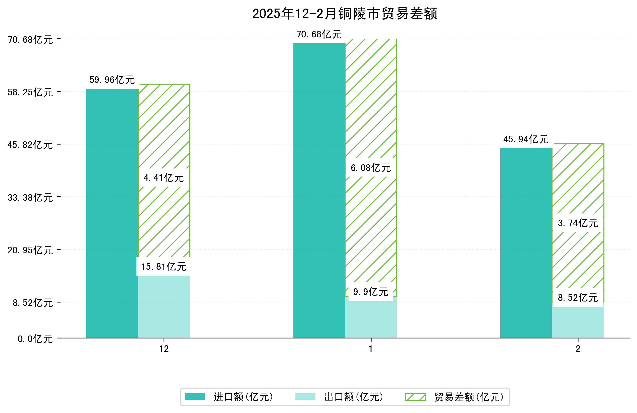 2025年2月铜陵市进出口总额及进出口差额统计分析