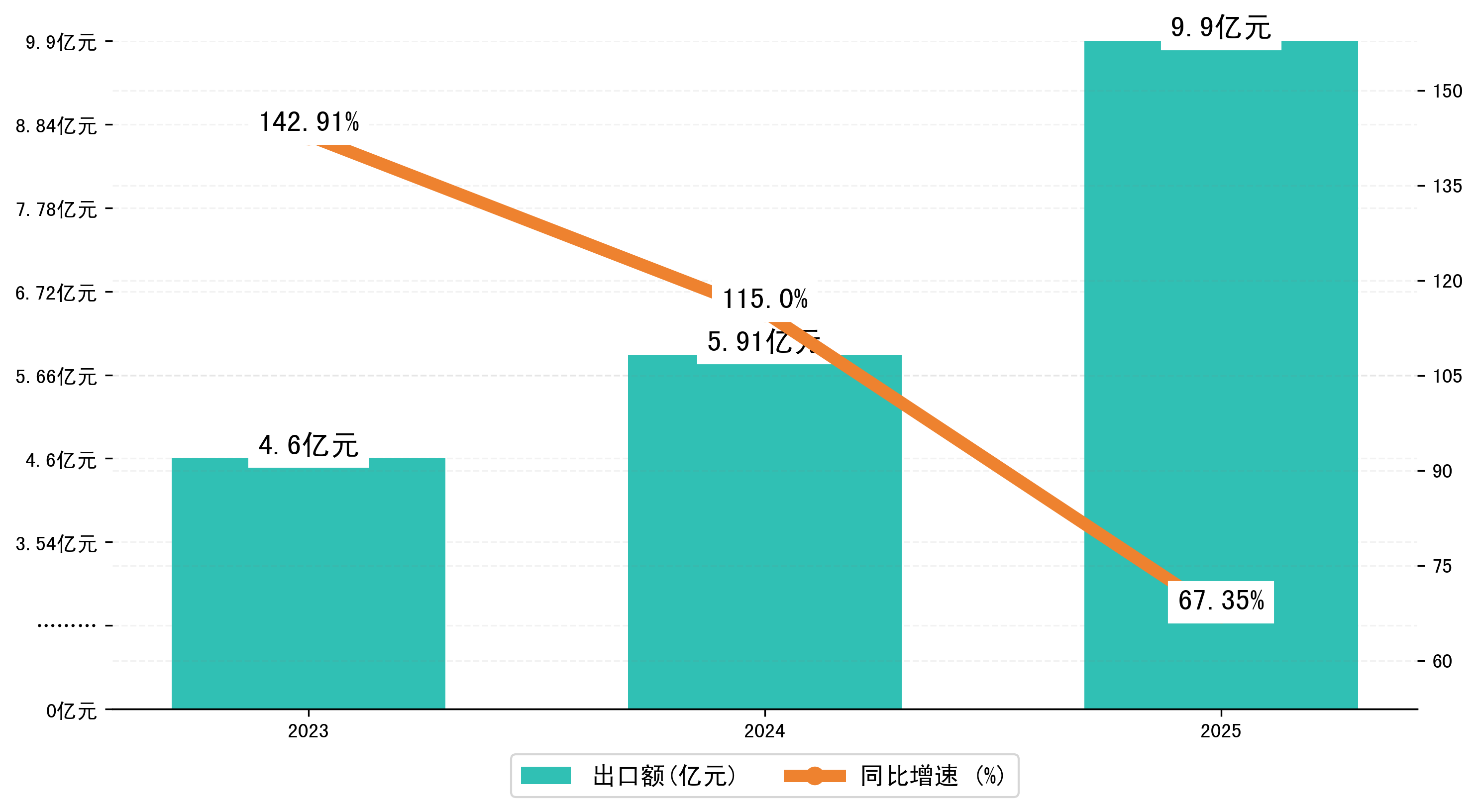 以美元计,2025年1-1月铜陵市出口额为1,3773.6781万美元,相比上年同期增加了5465.4007万美元,同比增加65.80%。