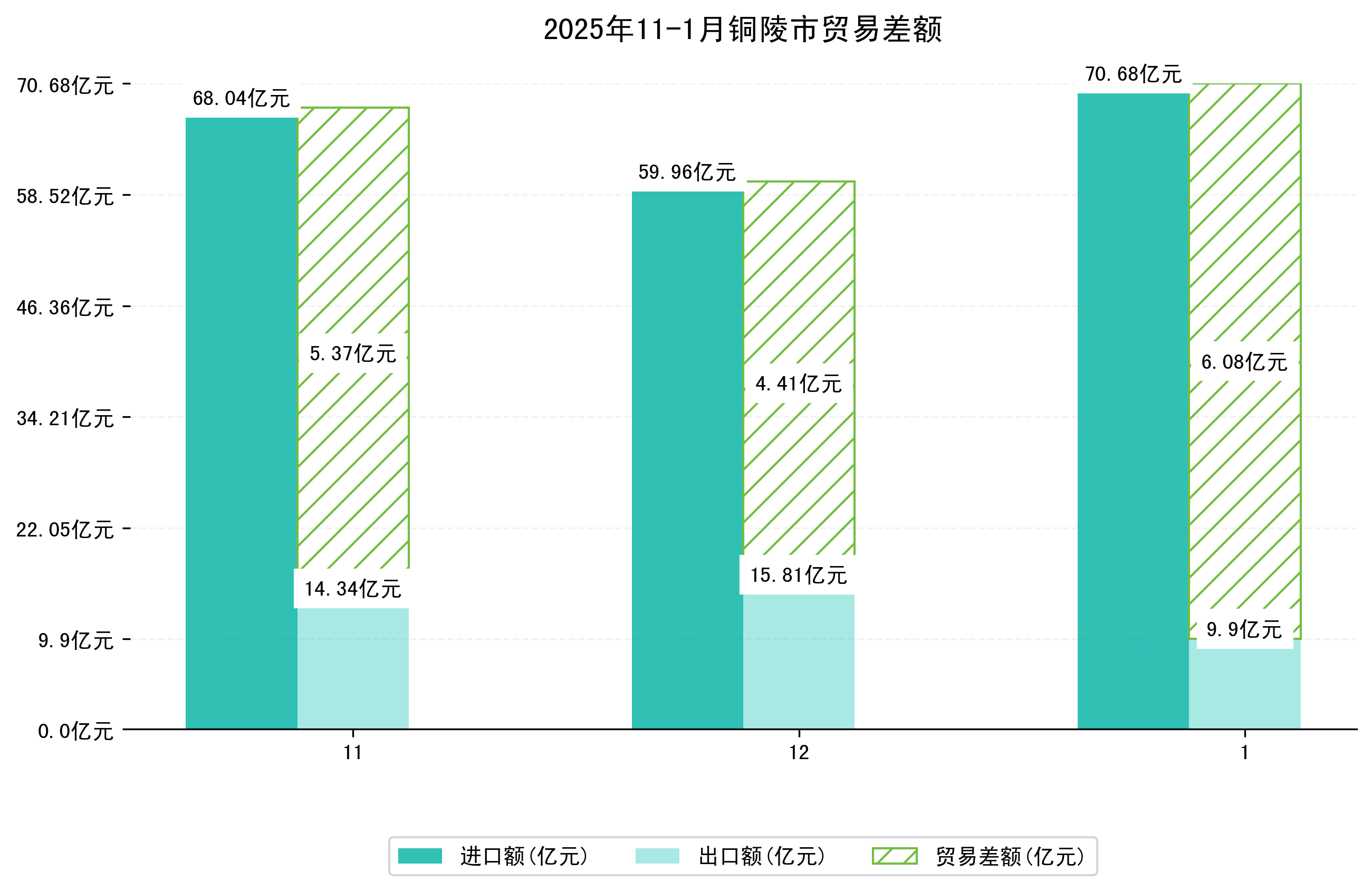 2025年1月铜陵市进出口总额及进出口差额统计分析