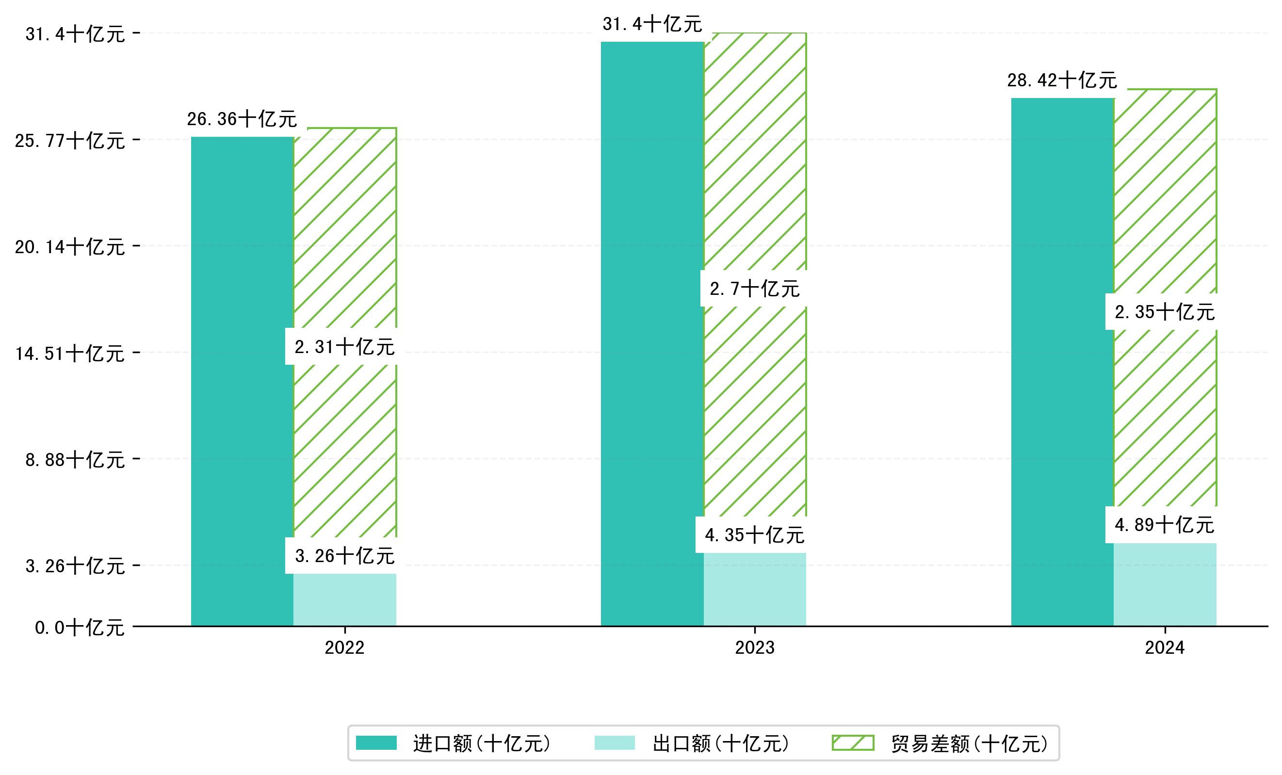 以人民币计,2024年1-5月铜陵市贸易差额为235,2871,8015万元(贸易逆差),相比上年同期增加了35,1350,3258万元,同比增加-12.99%。