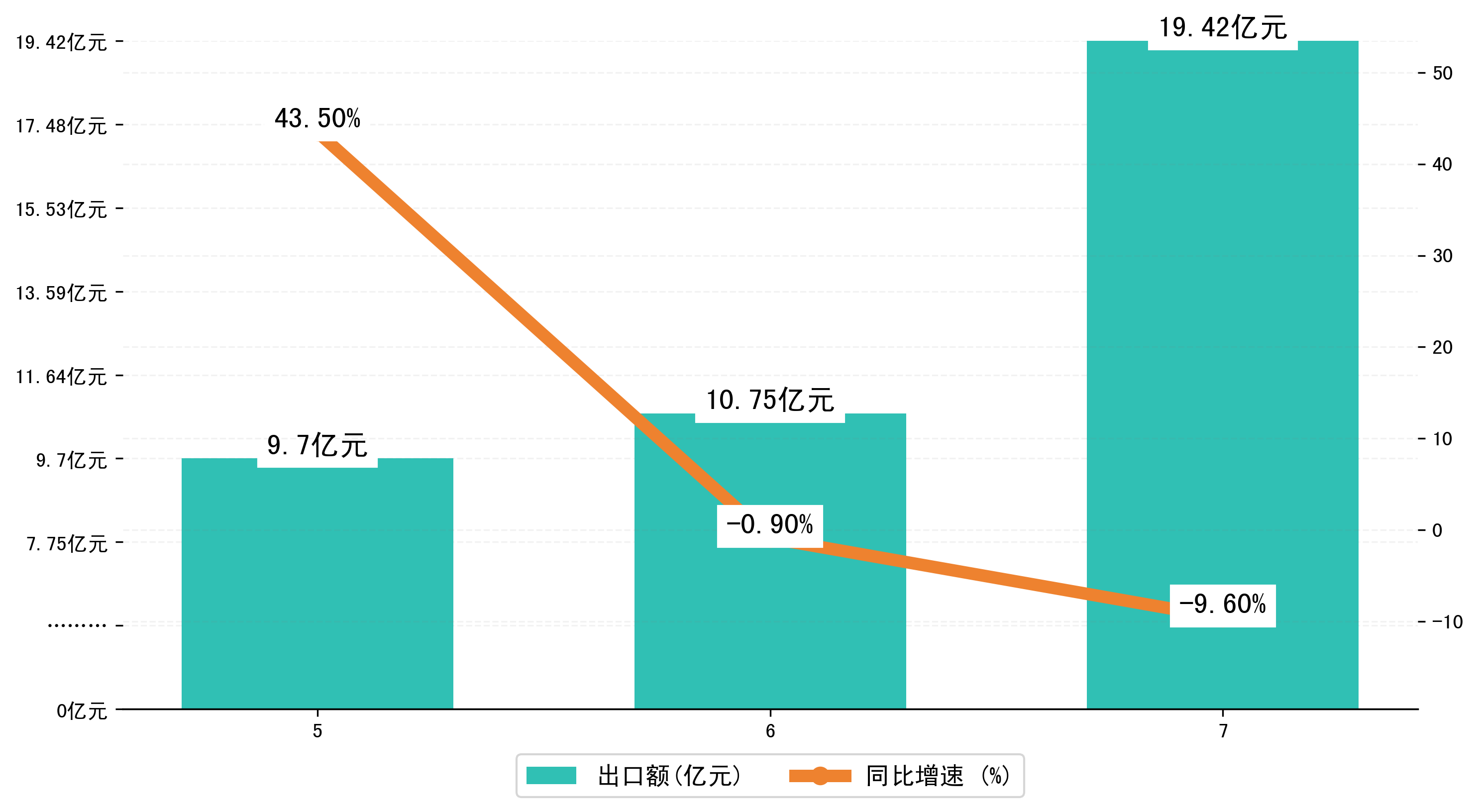 一、2025年7月铜陵市单月出口总额及进出口差额统计分析