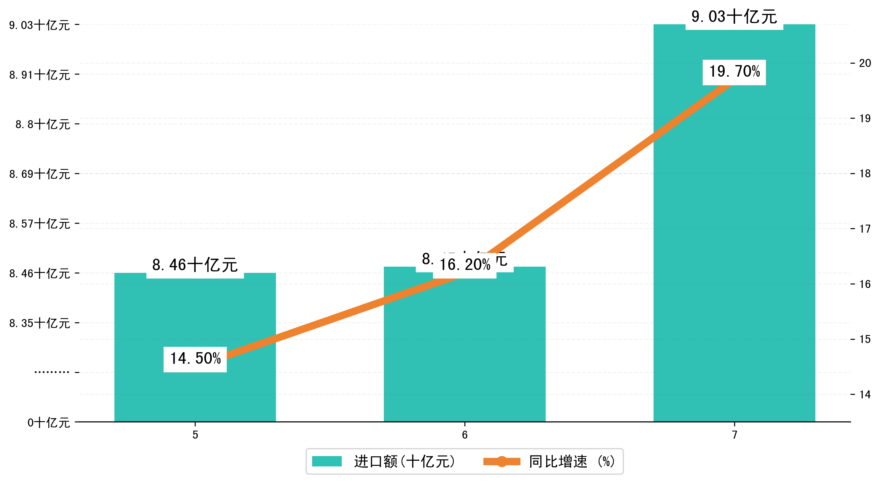 以人民币计,2025年7月铜陵市进口额为90,2546.8171万元,相比上月增加了5,5139.4011万元;相比上年同期增加了21,1221.8274万元,同比增加了19.70%。