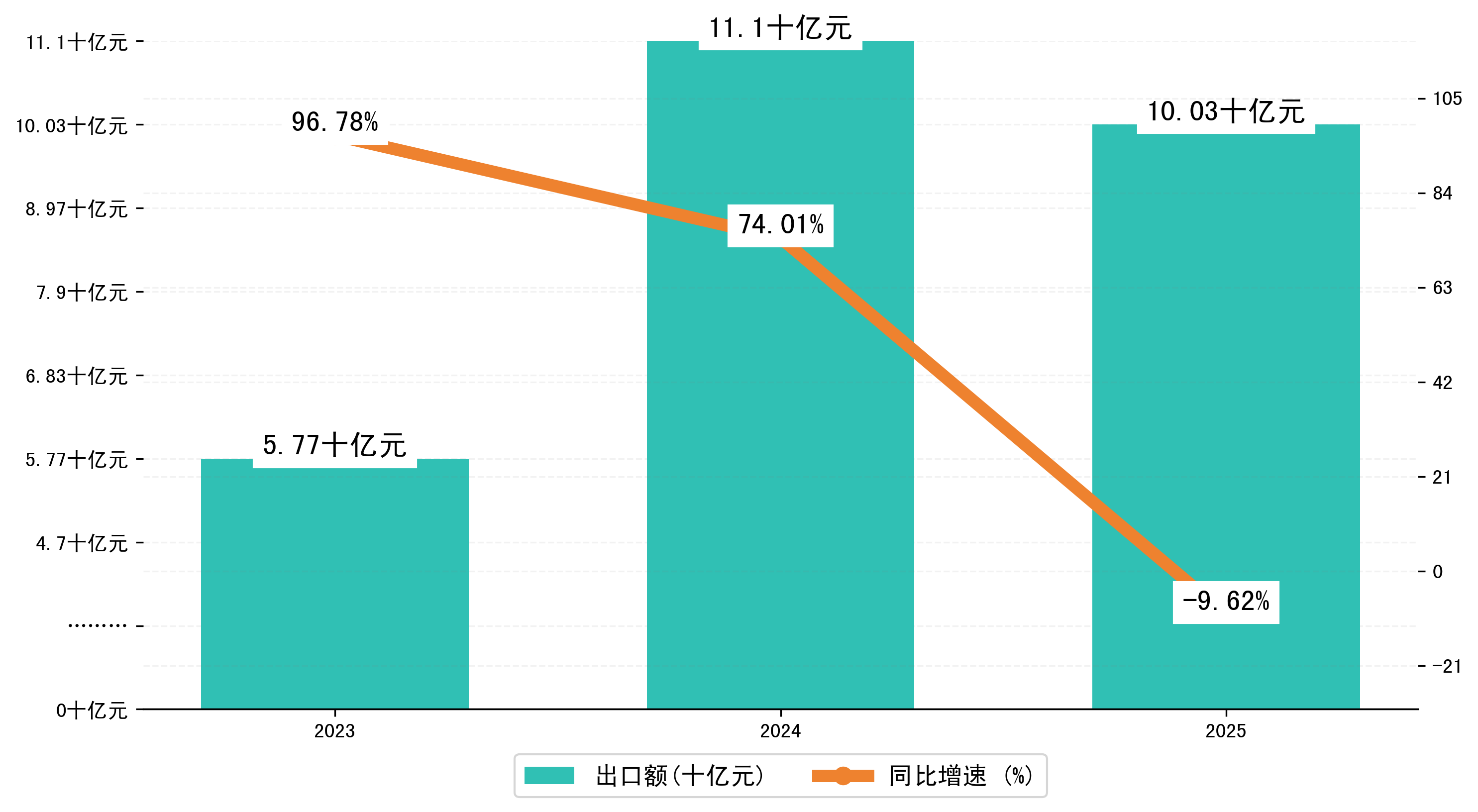 以人民币计,2025年1-7月铜陵市出口额为100,3249.2467万元,相比上年同期减少了10,6733.4812万元,同比减少了-9.60%。