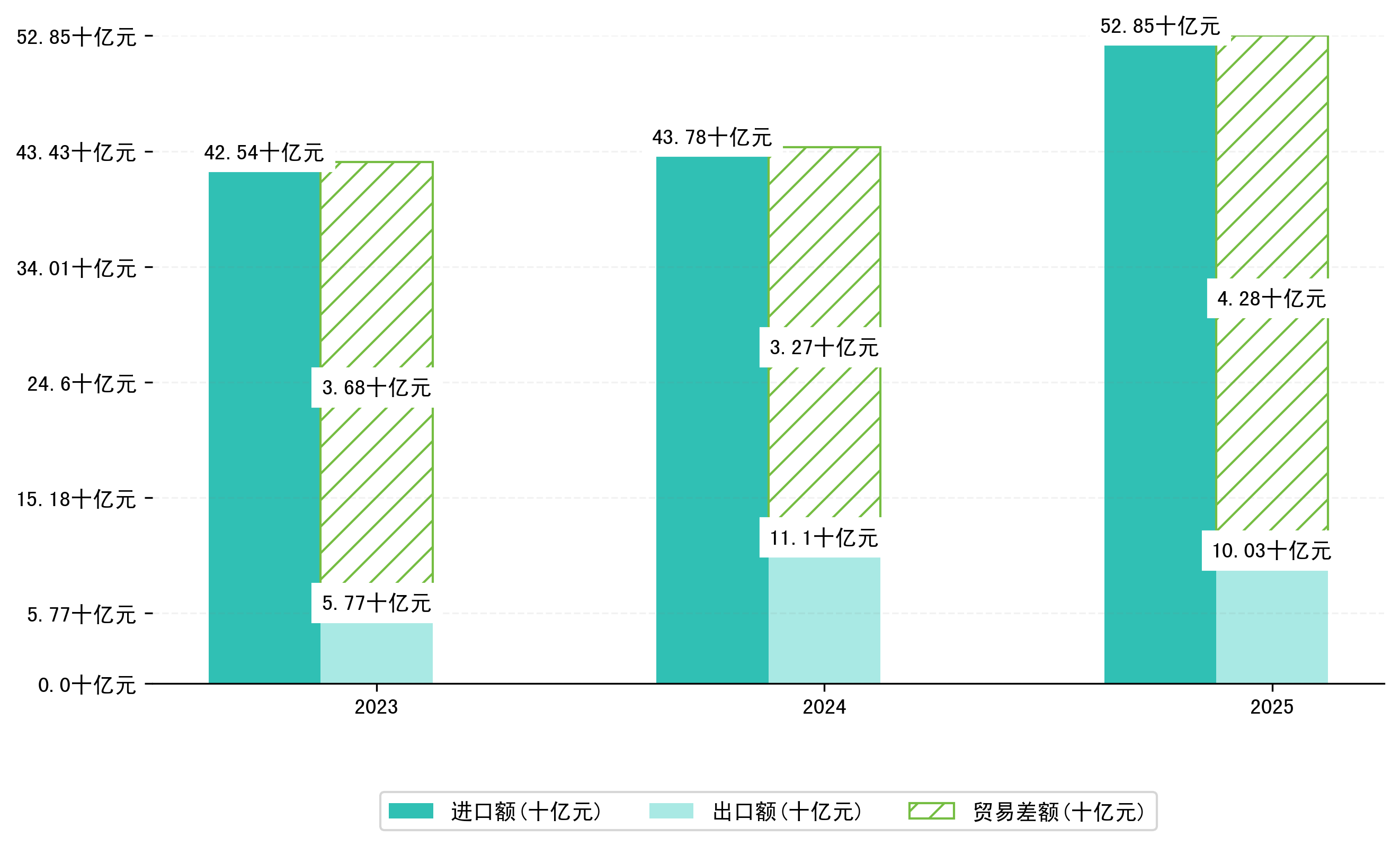 以人民币计,2025年7月铜陵市贸易差额为70,8324,6359万元(贸易逆差),相比上月增加了3,1585,9694万元,即4123,7477万美元;相比上年同期减少了31,0467,2705万元,同比减少78.03%。