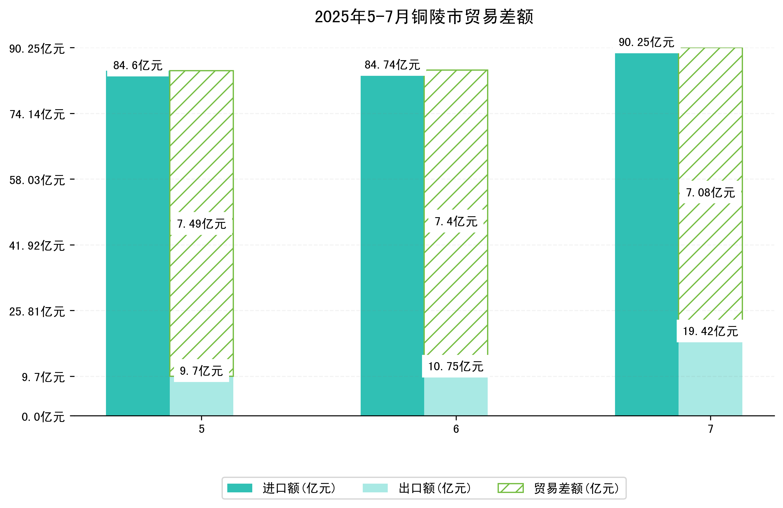 2025年7月铜陵市进出口总额及进出口差额统计分析
