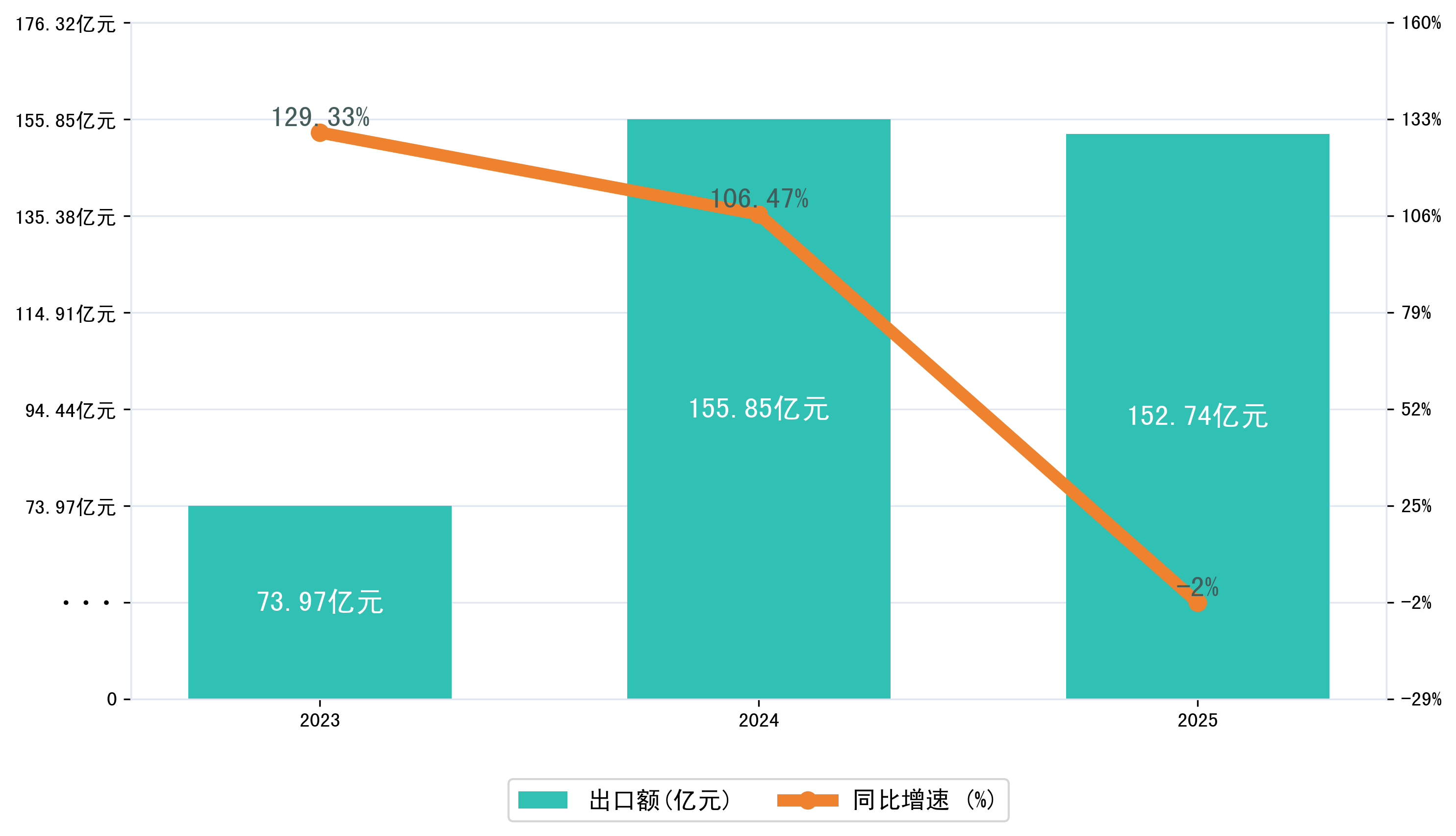 以美元计,2025年1-10月铜陵市出口额为21,3201.5092万美元,相比上年同期减少了6054.8816万美元,同比减少-2.80%。