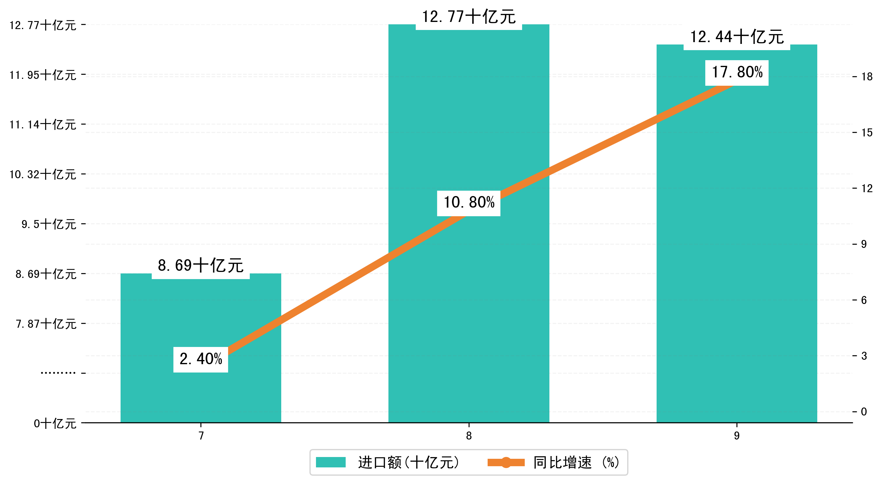 以人民币计,2023年9月潍坊市进口额为124,3806.3354万元,相比上月减少了3,3250.7629万元;相比上年同期增加了55,4865.8298万元,同比增加了17.80%。