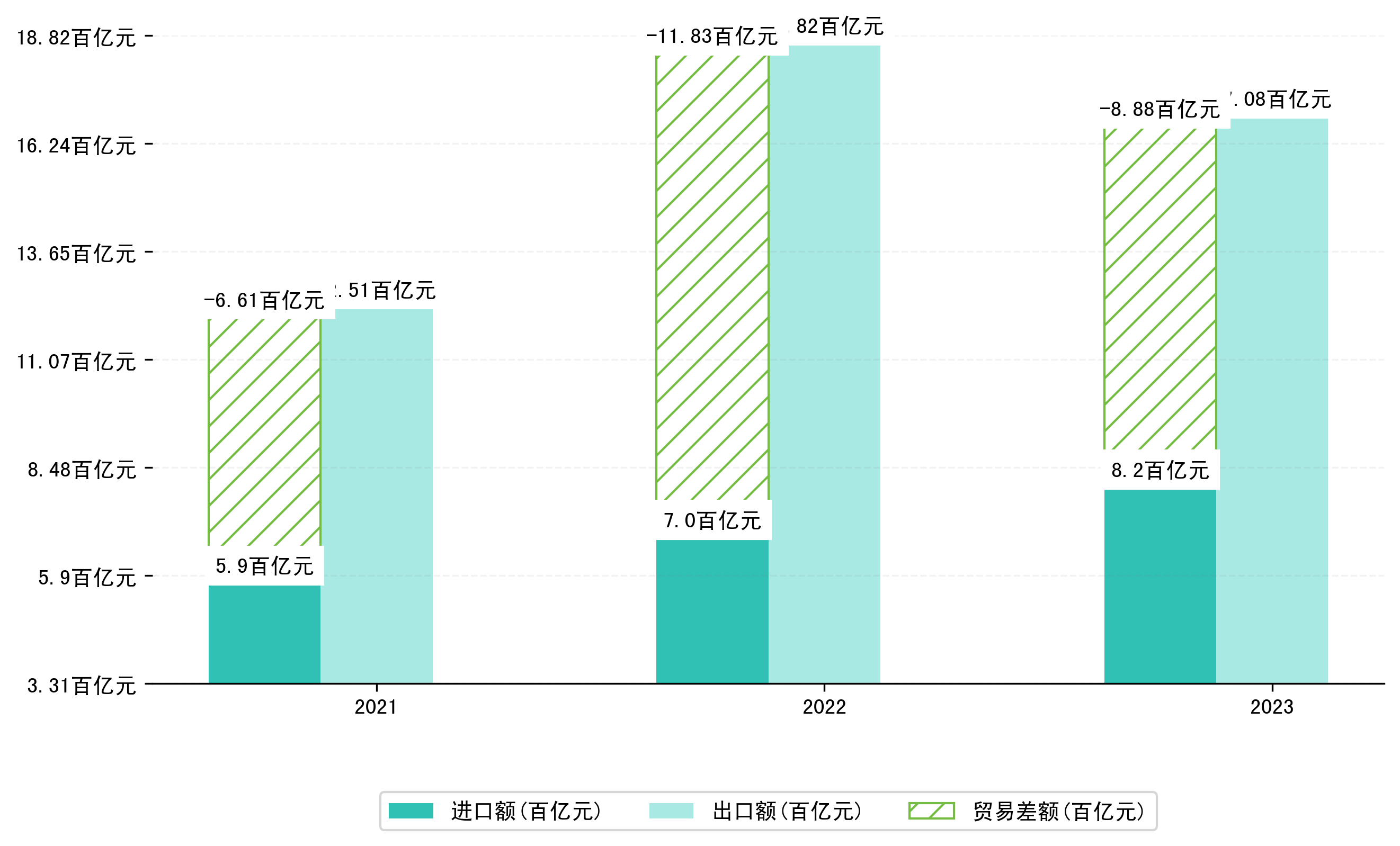 以人民币计,2023年1-9月潍坊市贸易差额为887,5712,0772万元(贸易顺差),相比上年同期减少了295,1884,8775万元,同比减少-24.96%。