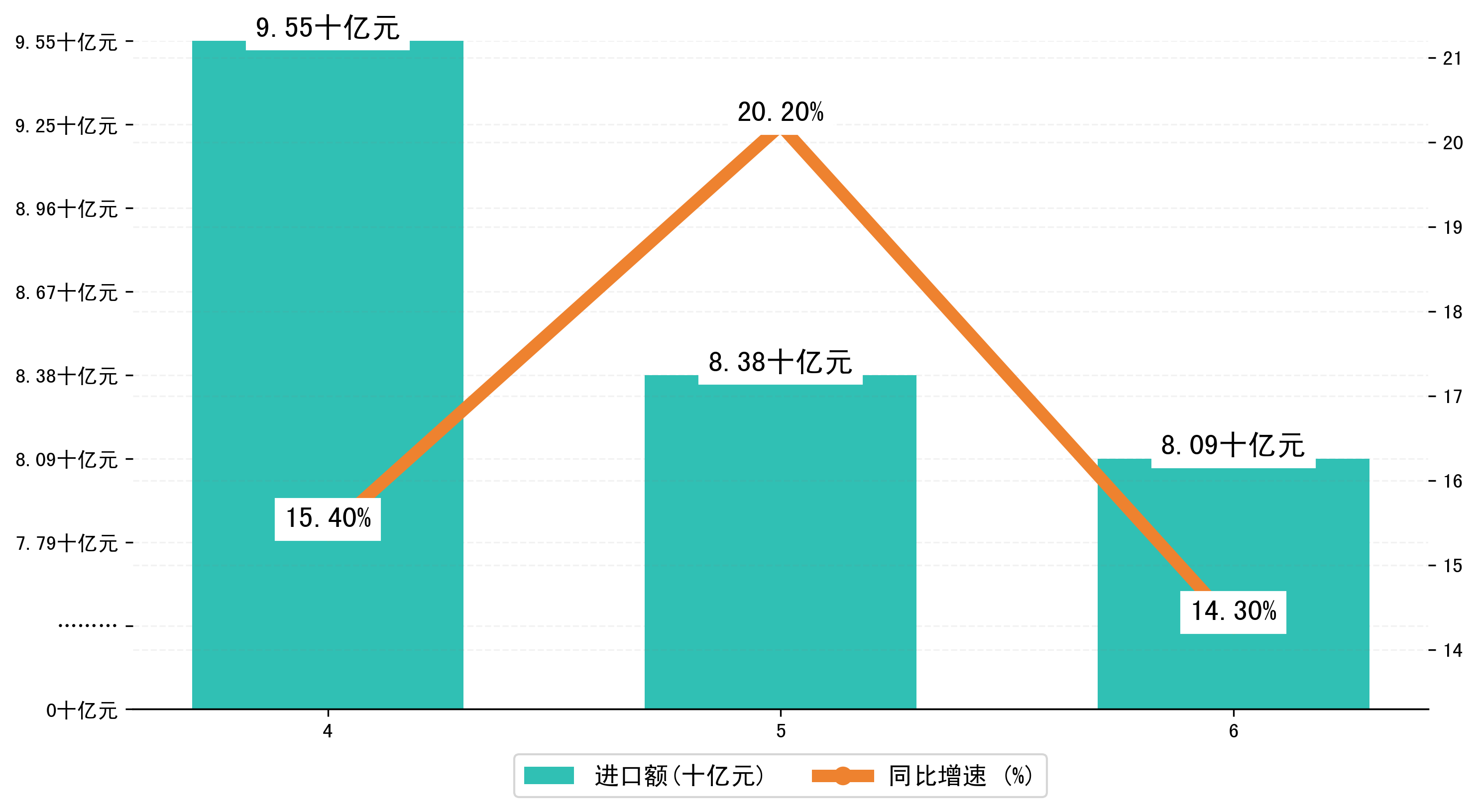 以人民币计,2024年6月潍坊市进口额为80,8536.8108万元,相比上月减少了2,9148.2431万元;相比上年同期减少了10,1340.122万元,同比增加了14.30%。