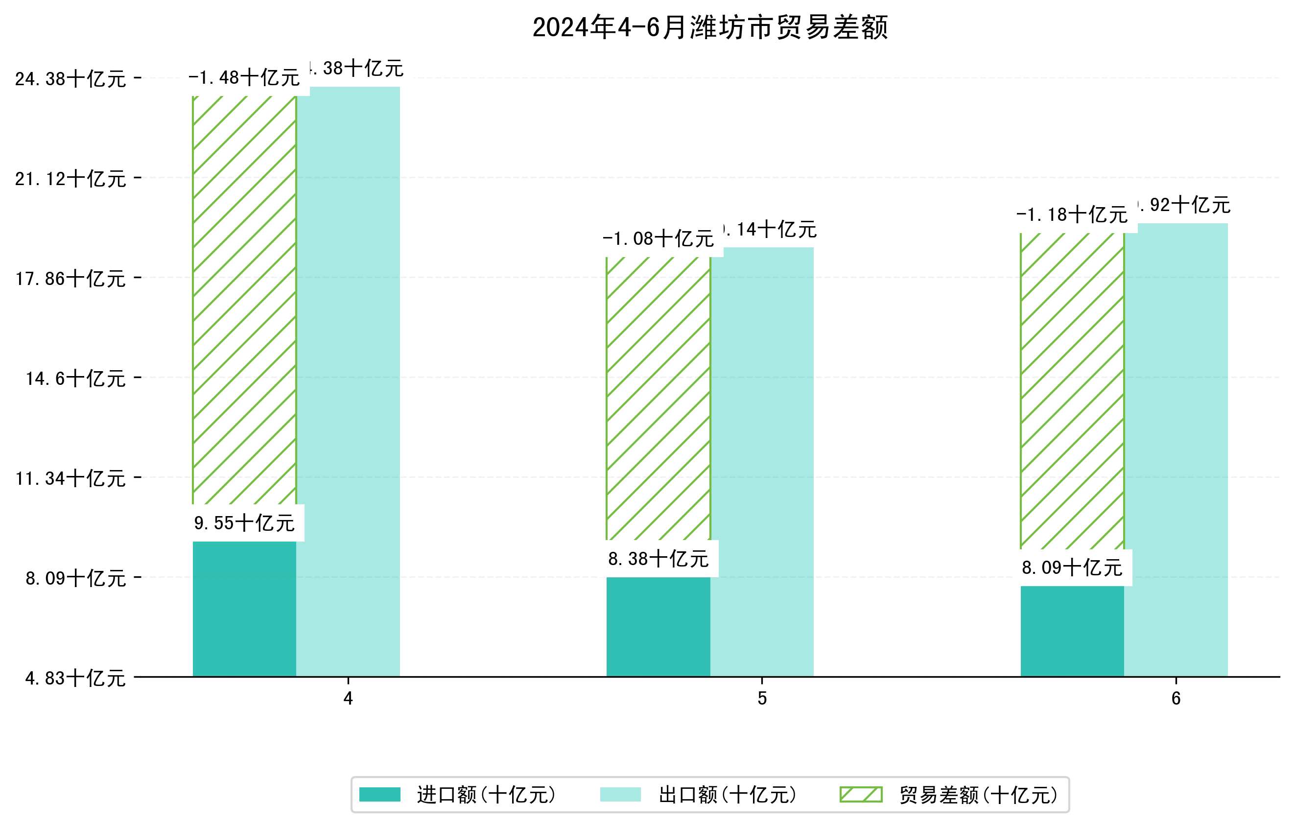 2024年6月潍坊市进出口总额及进出口差额统计分析
