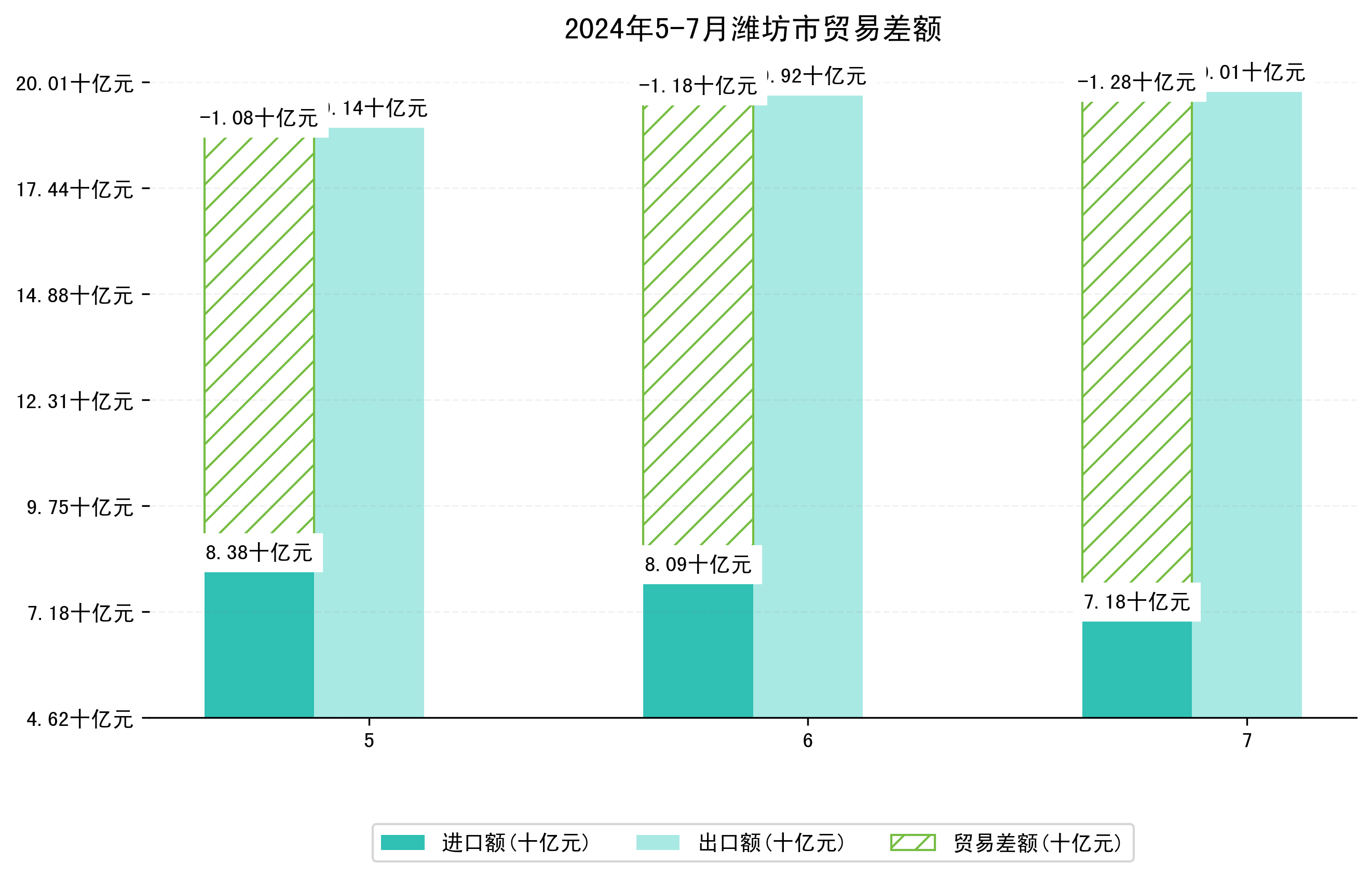 2024年7月潍坊市进出口总额及进出口差额统计分析