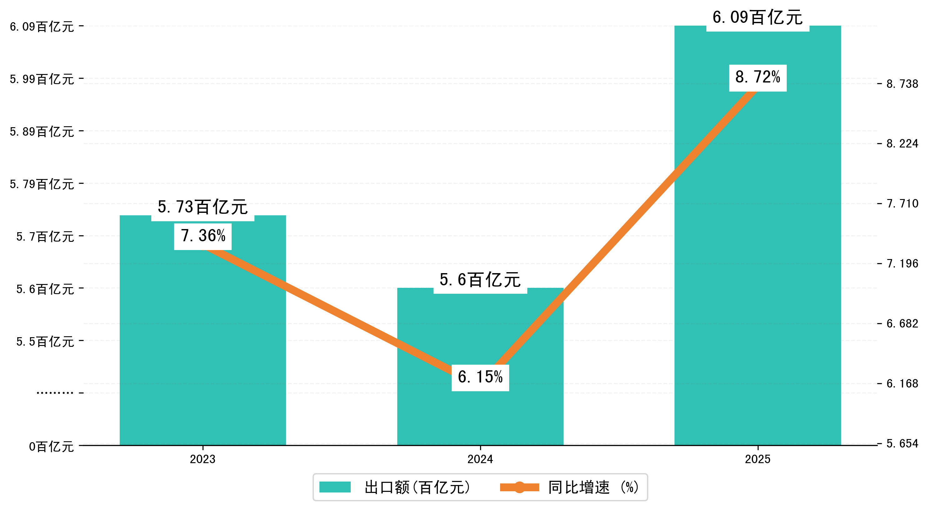 以人民币计,2025年1-3月潍坊市出口额为608,6242.294万元,相比上年同期增加了48,7952.2041万元,同比增加了8.70%。