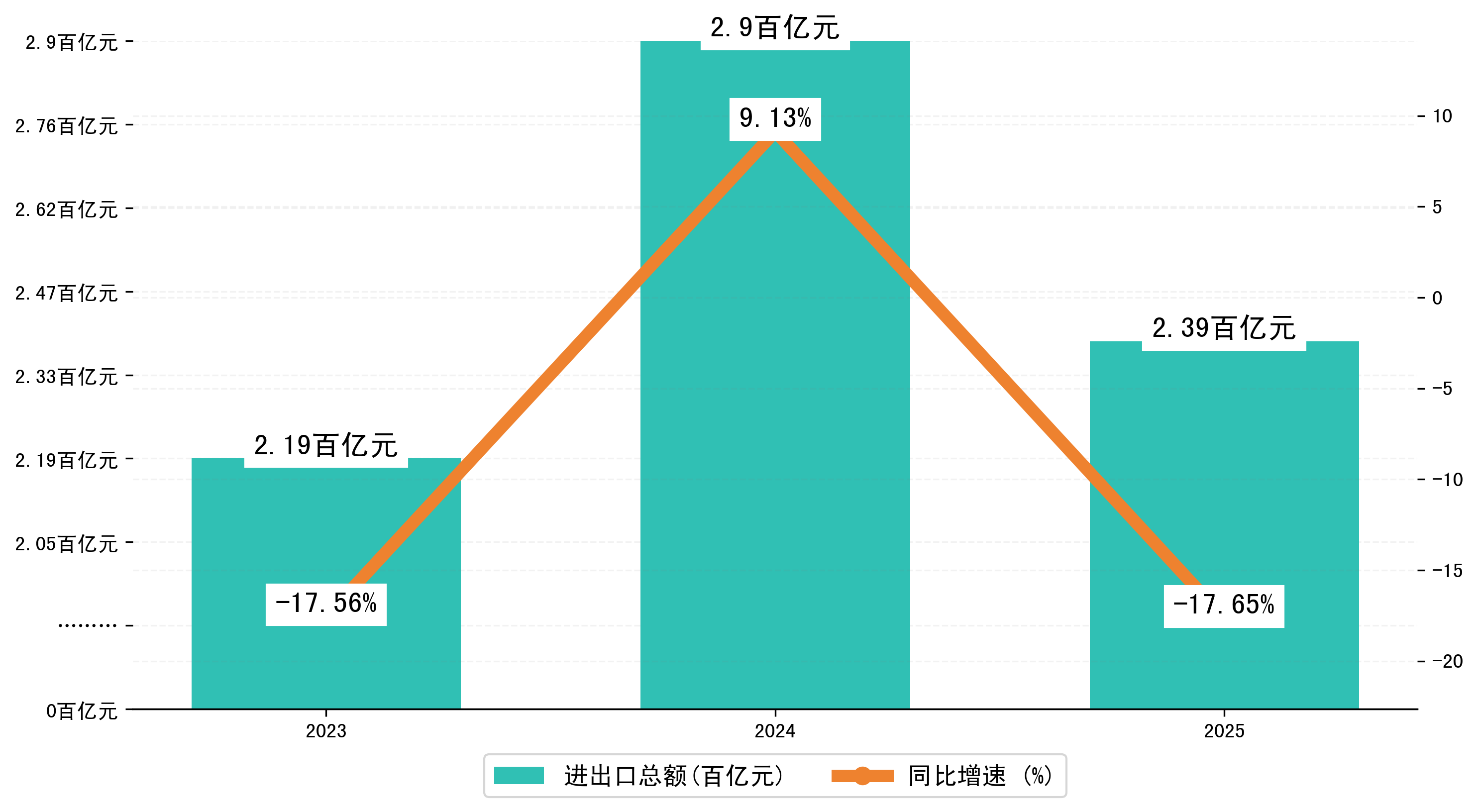 以人民币计,2025年1月潍坊市进出口总额为238,8287.71万元,相比上月减少了84,0522.7603万元;相比上年同期减少了51,1844.715万元,同比减少了-18.30%。