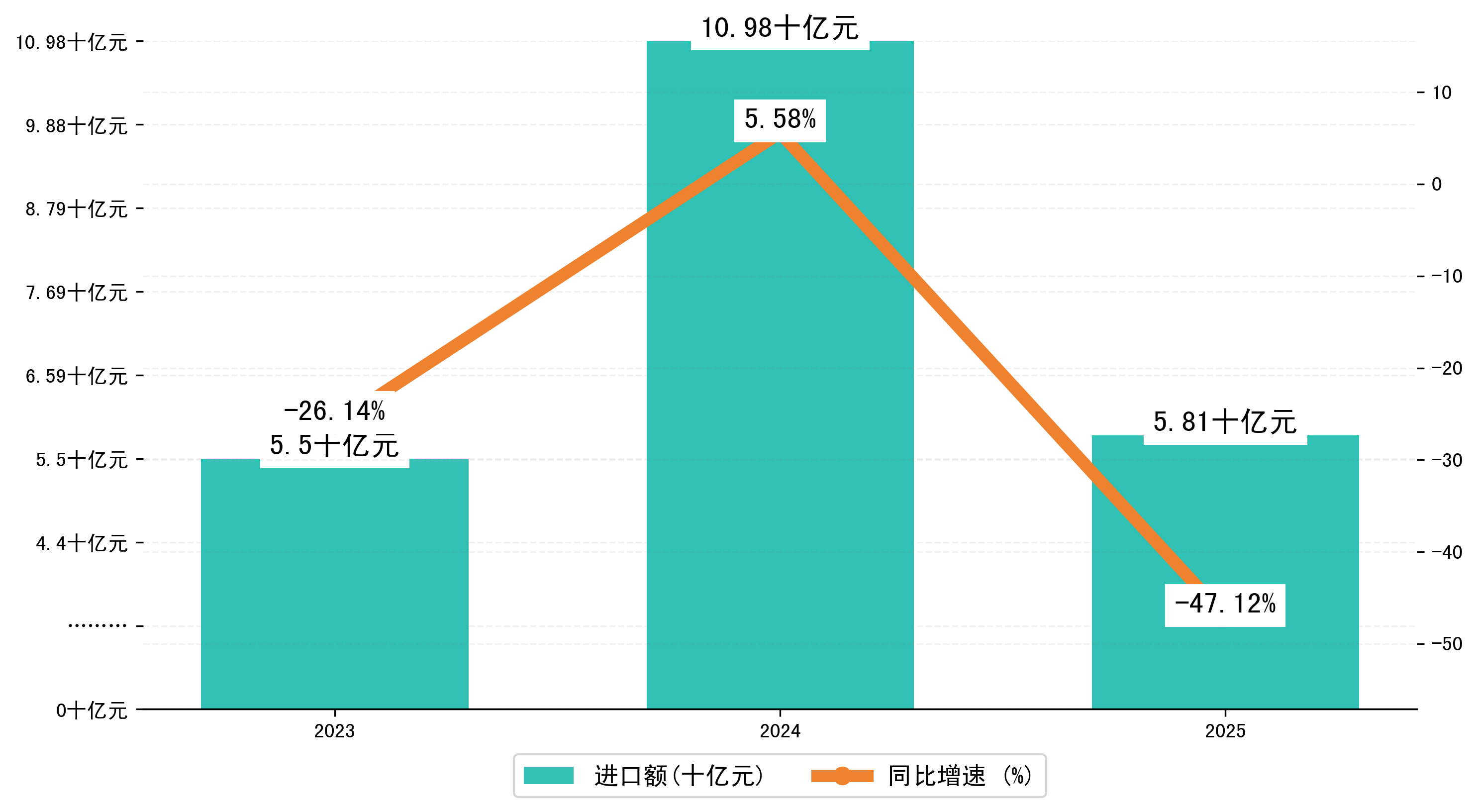 以人民币计,2025年1-1月潍坊市进口额为58,0530.1579万元,相比上年同期减少了51,7344.1694万元,同比减少了-48.10%。