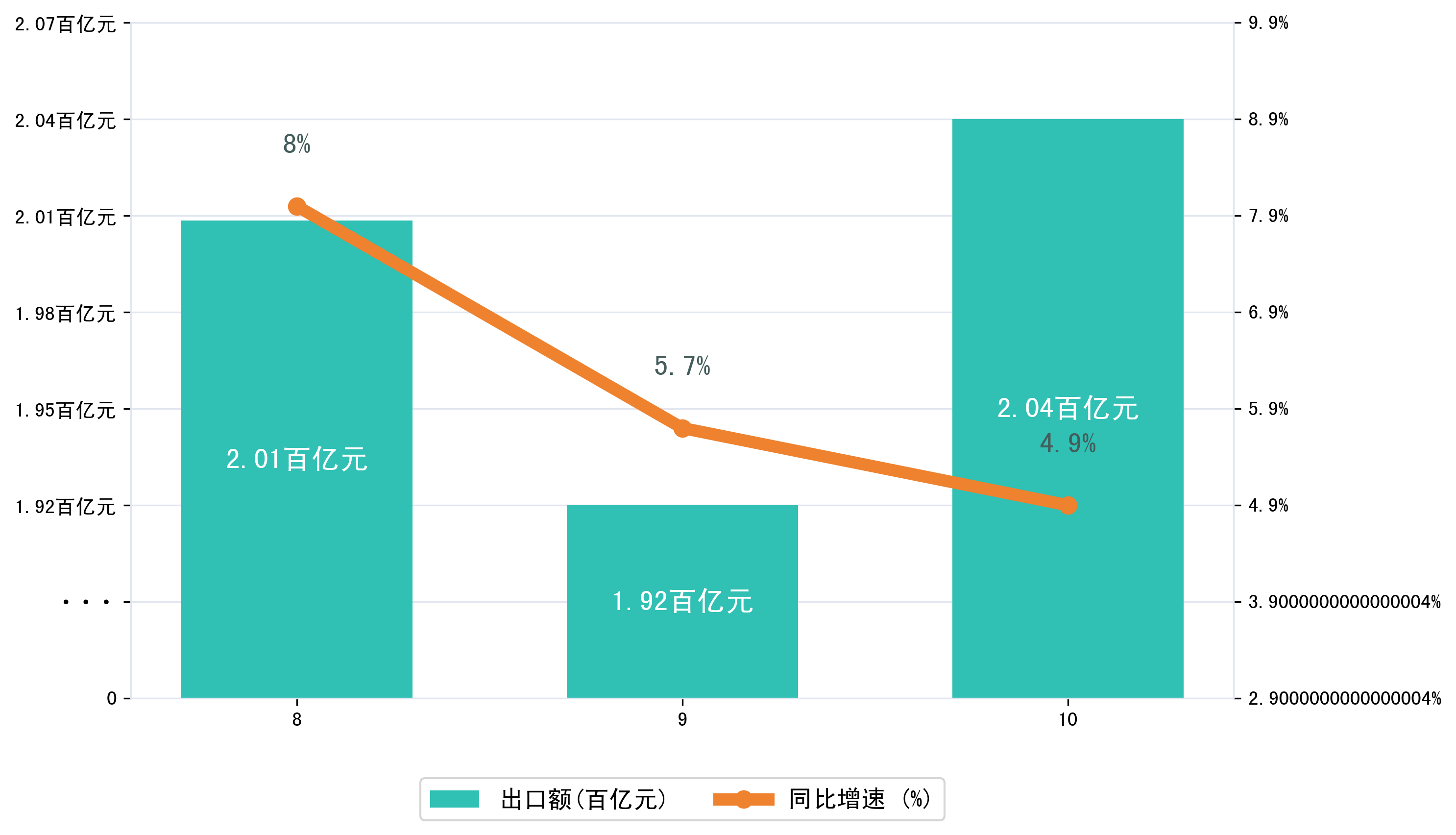 以人民币计,2025年10月潍坊市出口额为203,9312.246万元,相比上月增加了11,8352.3451万元;相比上年同期减少了4,1377.6807万元,同比增加了4.90%。
