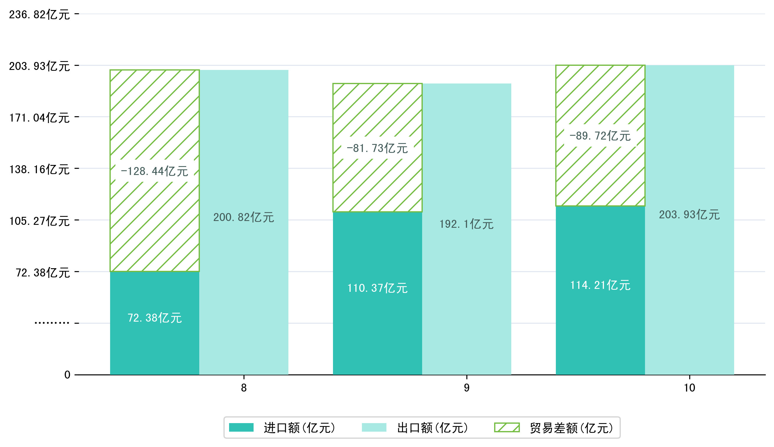 (图一:2025年8-10月潍坊市进出口总额)