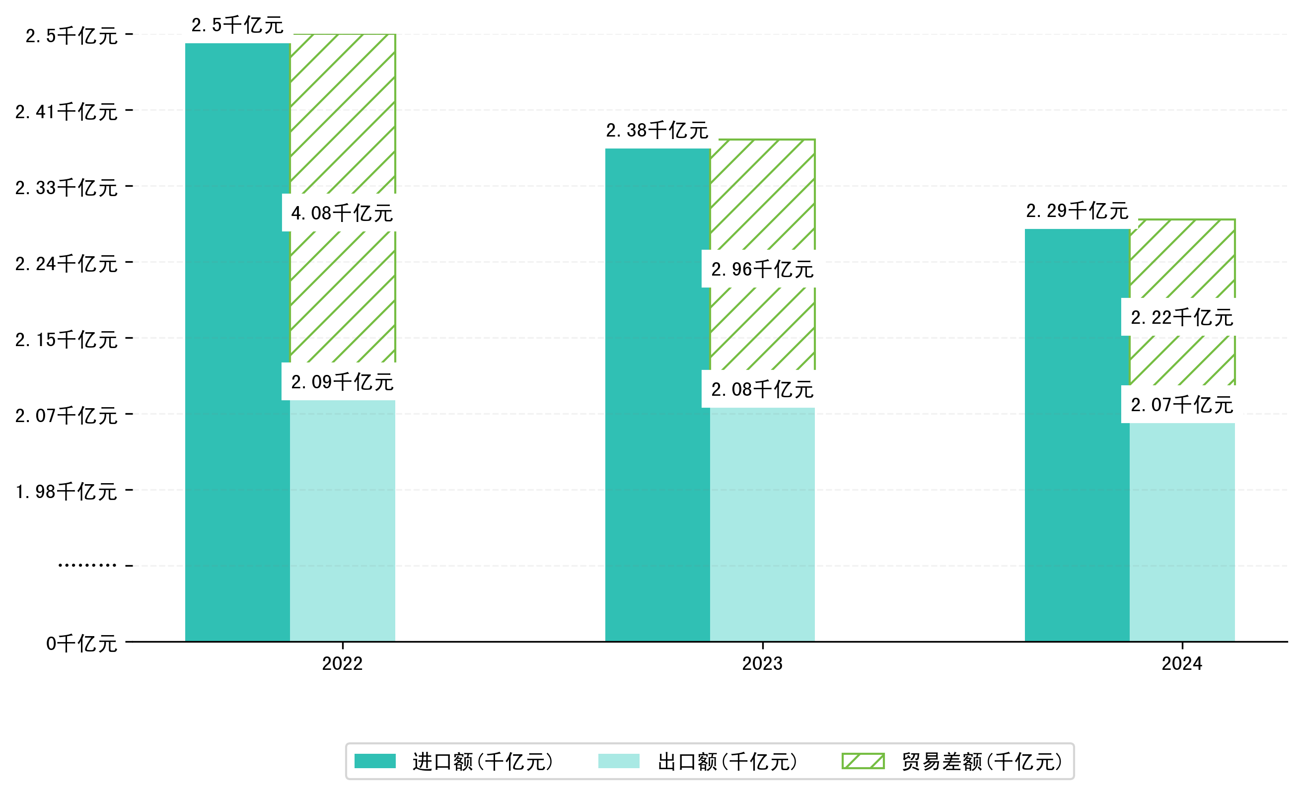 以人民币计,2024年1-7月辽宁省贸易差额为222,1370,1277万元(贸易逆差),相比上年同期增加了73,7617,6581万元,同比增加-24.93%。