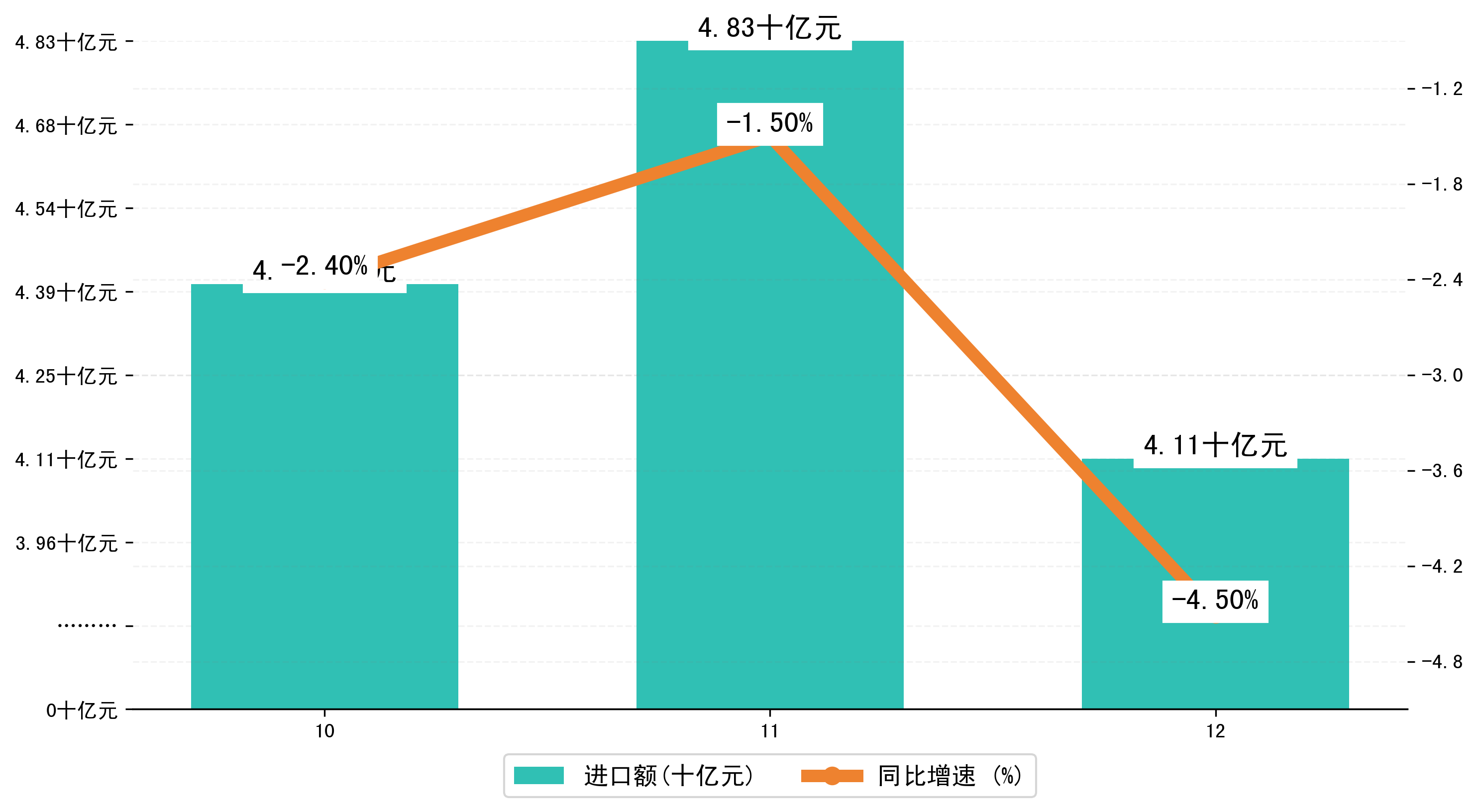 以人民币计,2023年12月威海市进口额为41,0672.4347万元,相比上月减少了7,1864.2333万元;相比上年同期减少了15,4276.2574万元,同比减少了-4.50%。