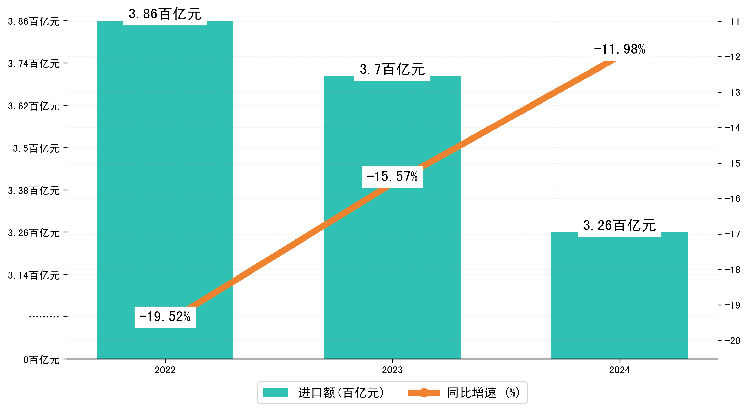 以人民币计,2024年1-9月威海市进口额为325,6570.0917万元,相比上年同期减少了44,3358.8888万元,同比减少了-12.40%。