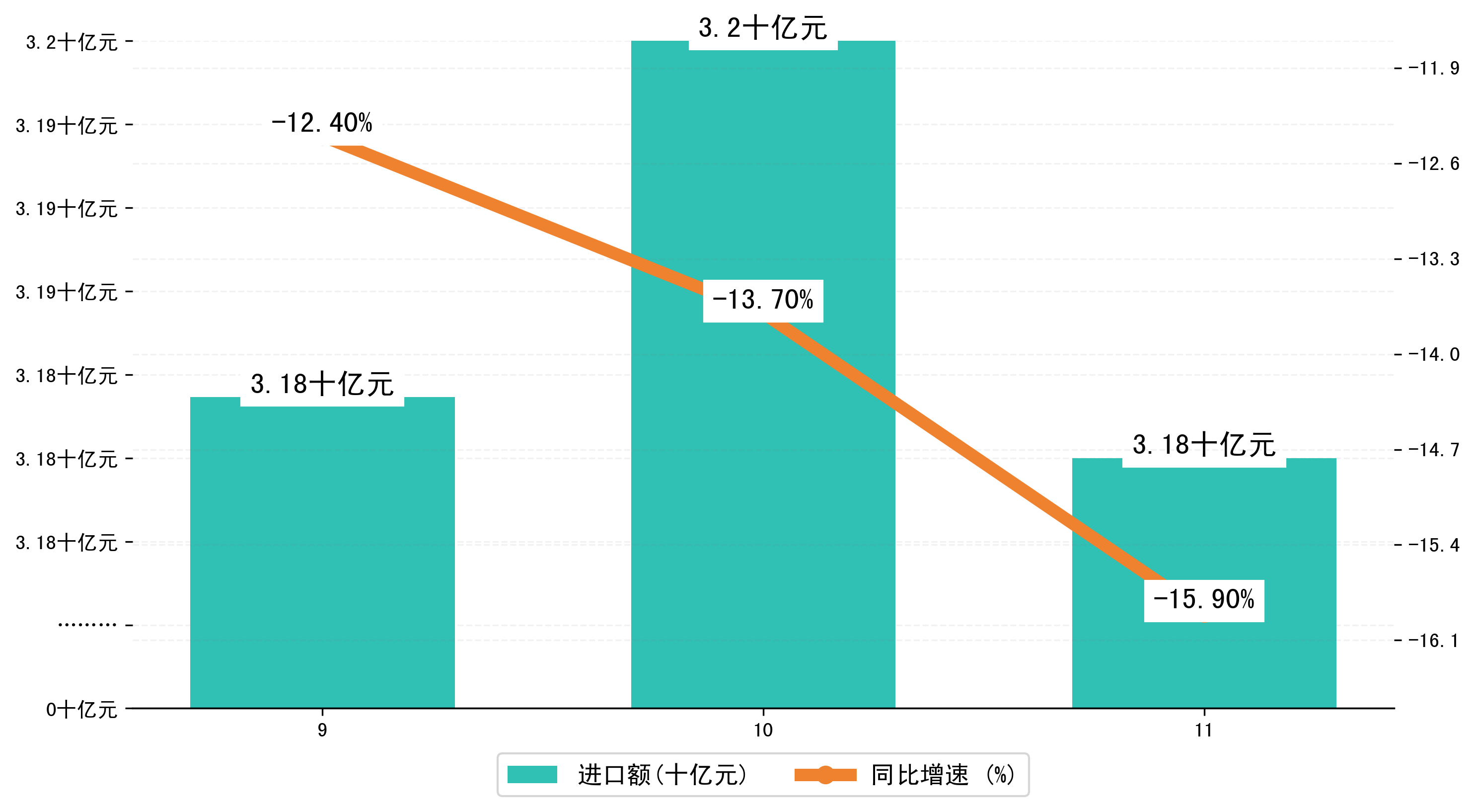 以人民币计,2024年11月威海市进口额为31,7882.0949万元,相比上月减少了1842.0213万元;相比上年同期减少了16,4654.5731万元,同比减少了-15.90%。