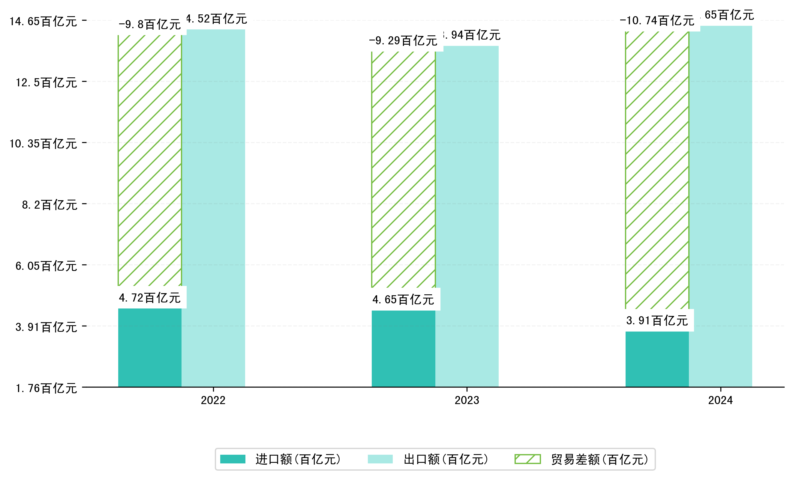 以人民币计,2024年11月威海市贸易差额为112,8529,2238万元(贸易顺差),相比上月减少了19,0584,1479万元,即2,7530,2283万美元;相比上年同期增加了69,3383,6892万元,同比增加159.35%。
