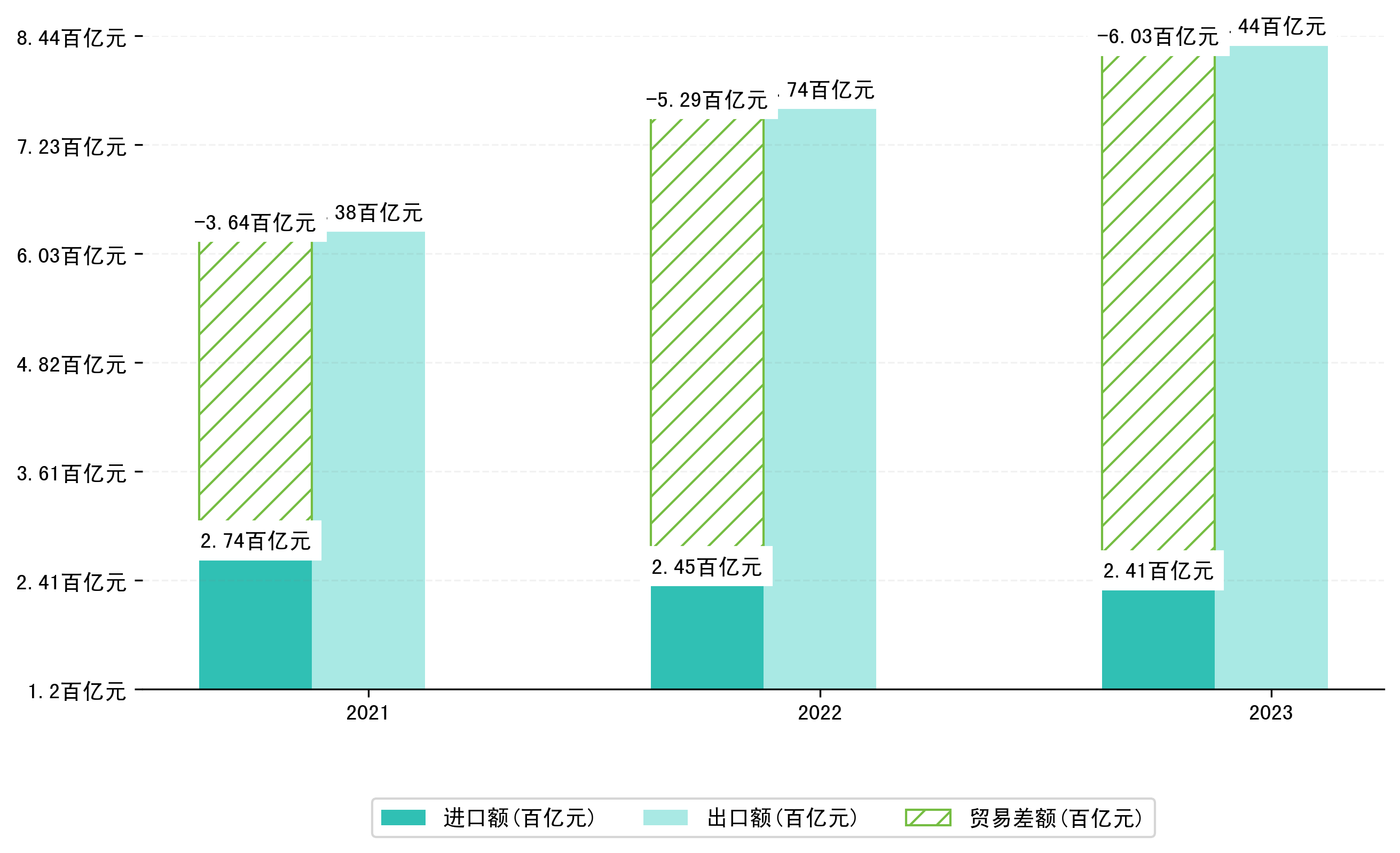 以美元计,2023年1-6月威海市贸易差额为87,3649,8767万美元(贸易顺差),相比上年同期增加了5,4088,5683万美元,同比增加6.6%。