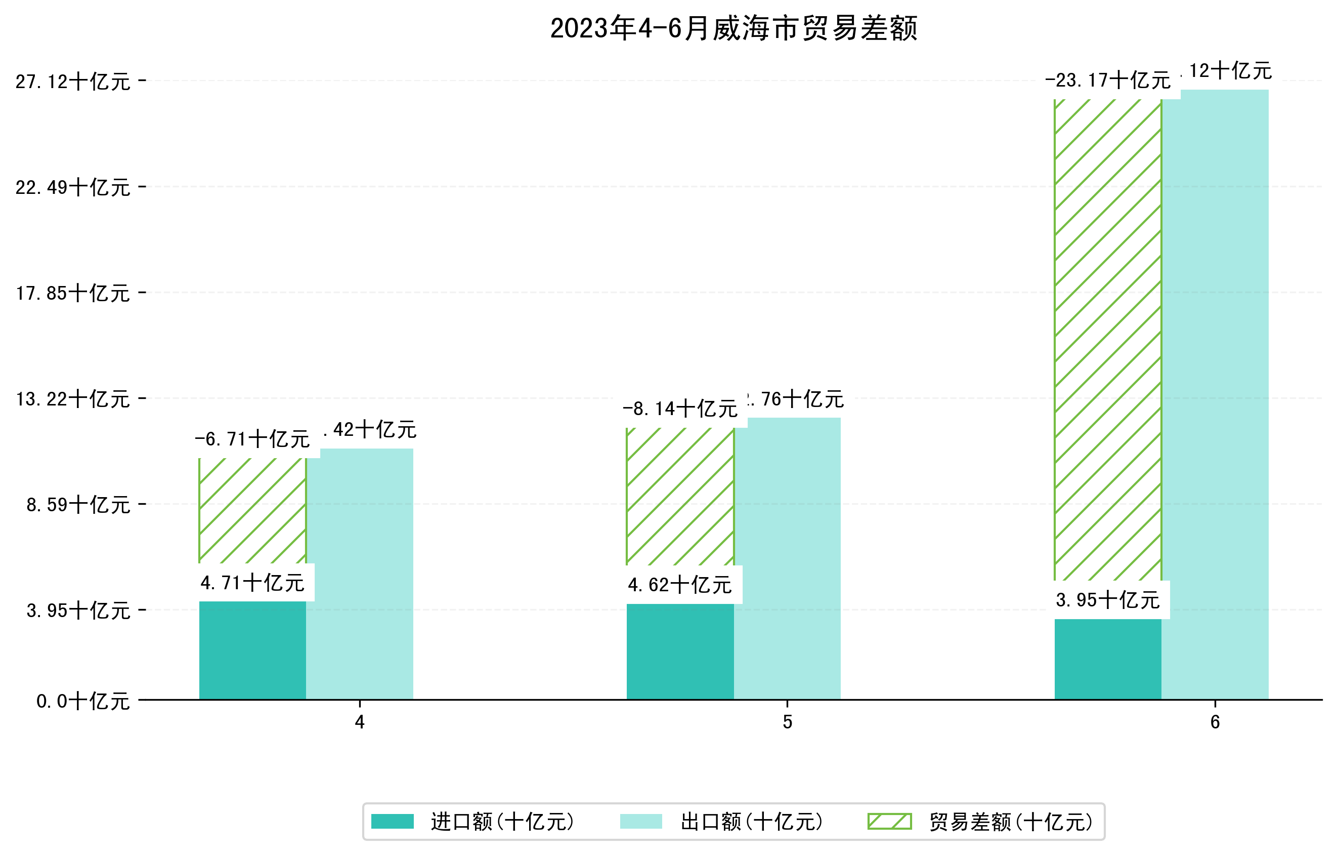 以人民币计,2023年6月威海市贸易差额为231,6554,8031万元(贸易顺差),相比上月增加了150,2818,8151万元,即21,4035,6149万美元;相比上年同期增加了94,8798,6327万元,同比增加69.37%。