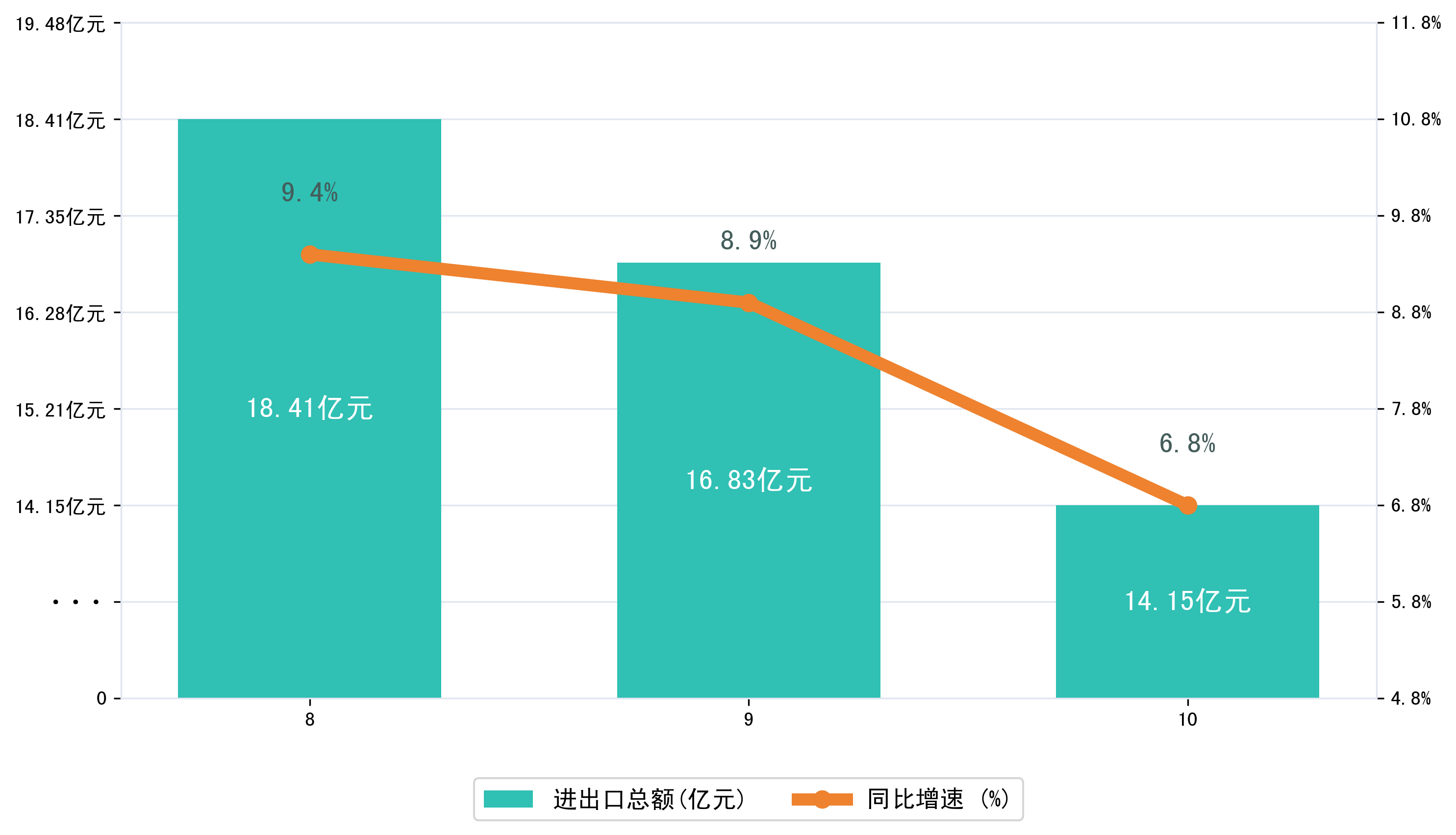 2025年10月宁夏回族自治区进出口总额及进出口差额统计分析