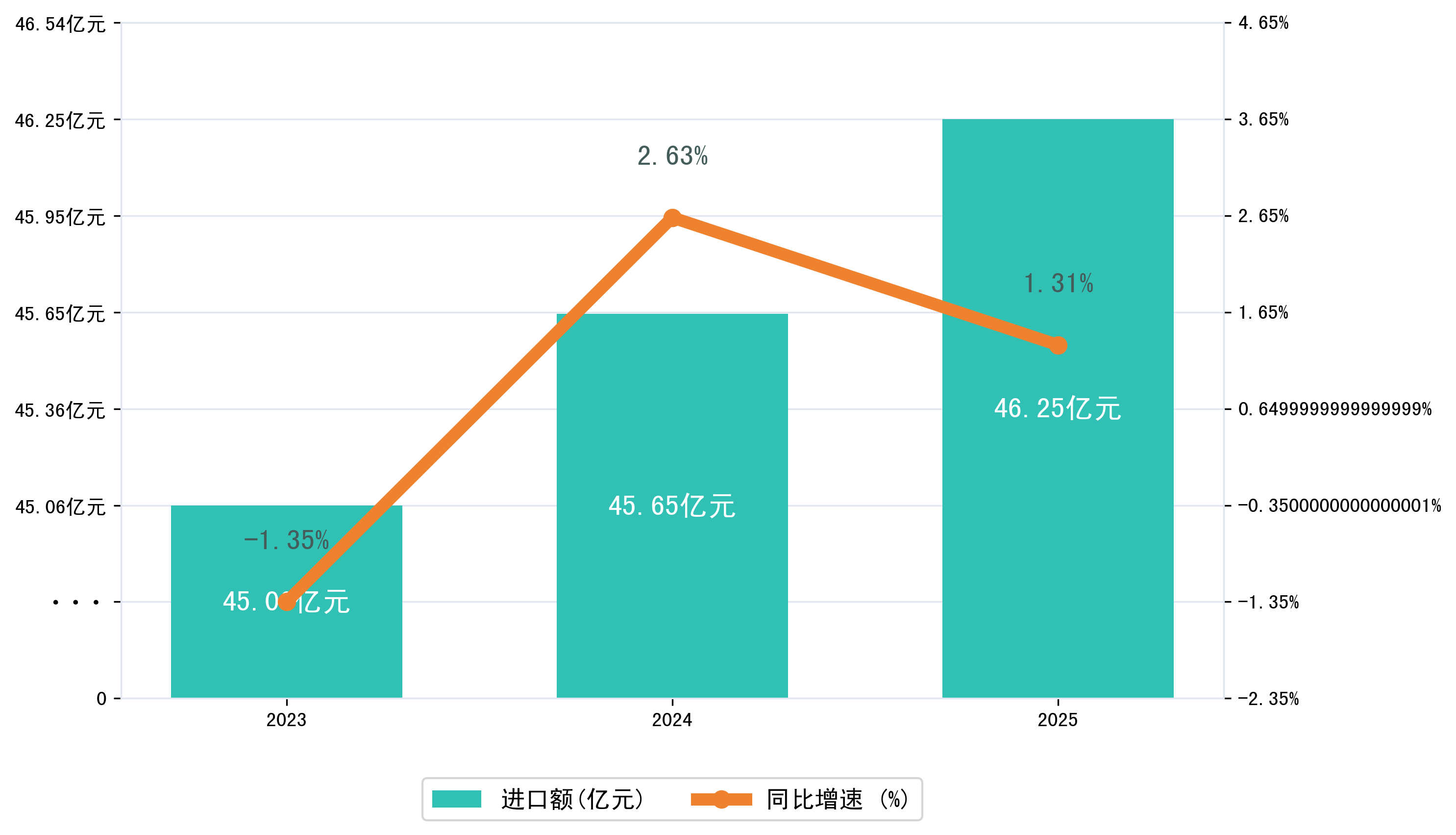 以美元计,2025年1-10月宁夏回族自治区进口额为6,4498.1387万美元,相比上年同期增加了297.0217万美元,同比增加4.70%。