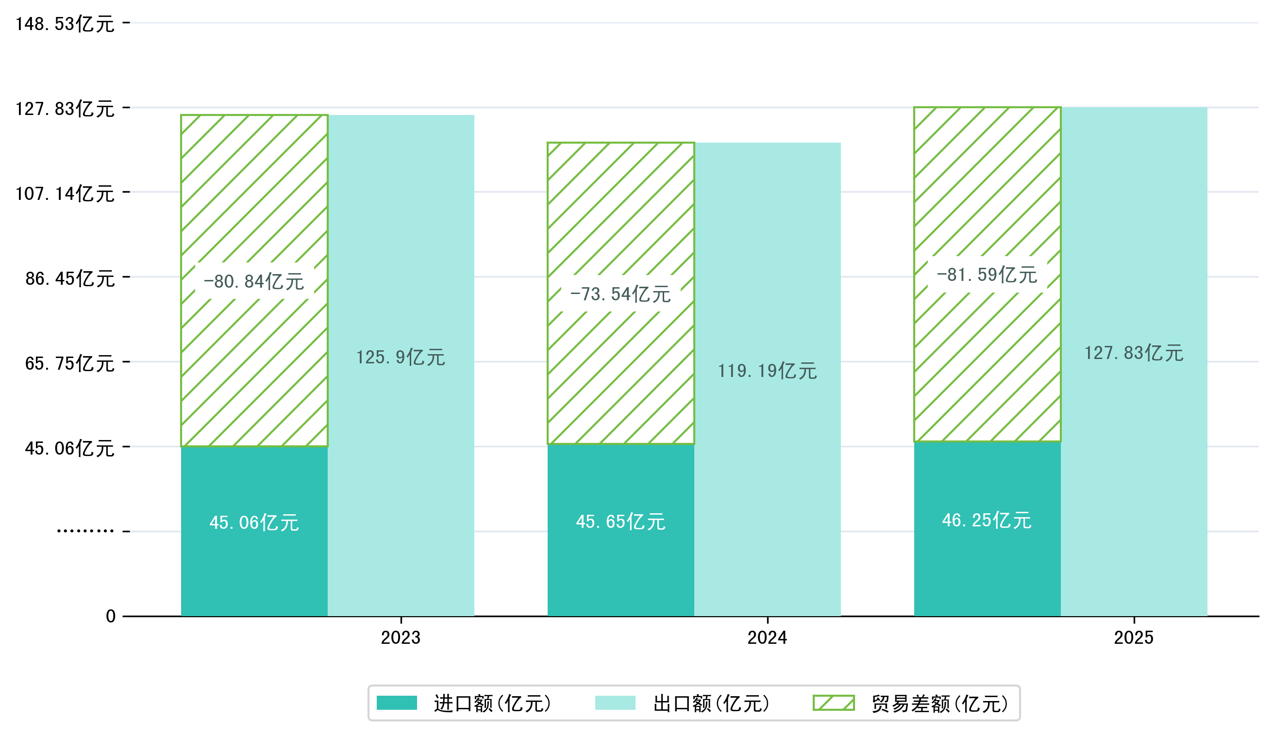 以人民币计,2025年1-10月宁夏回族自治区贸易差额为81,5875,5694万元(贸易顺差),相比上年同期增加了8,0483,0266万元,同比增加10.94%。