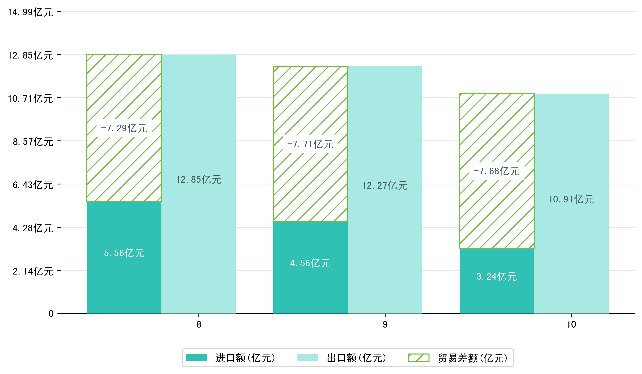 (图一:2025年8-10月宁夏回族自治区进出口总额)