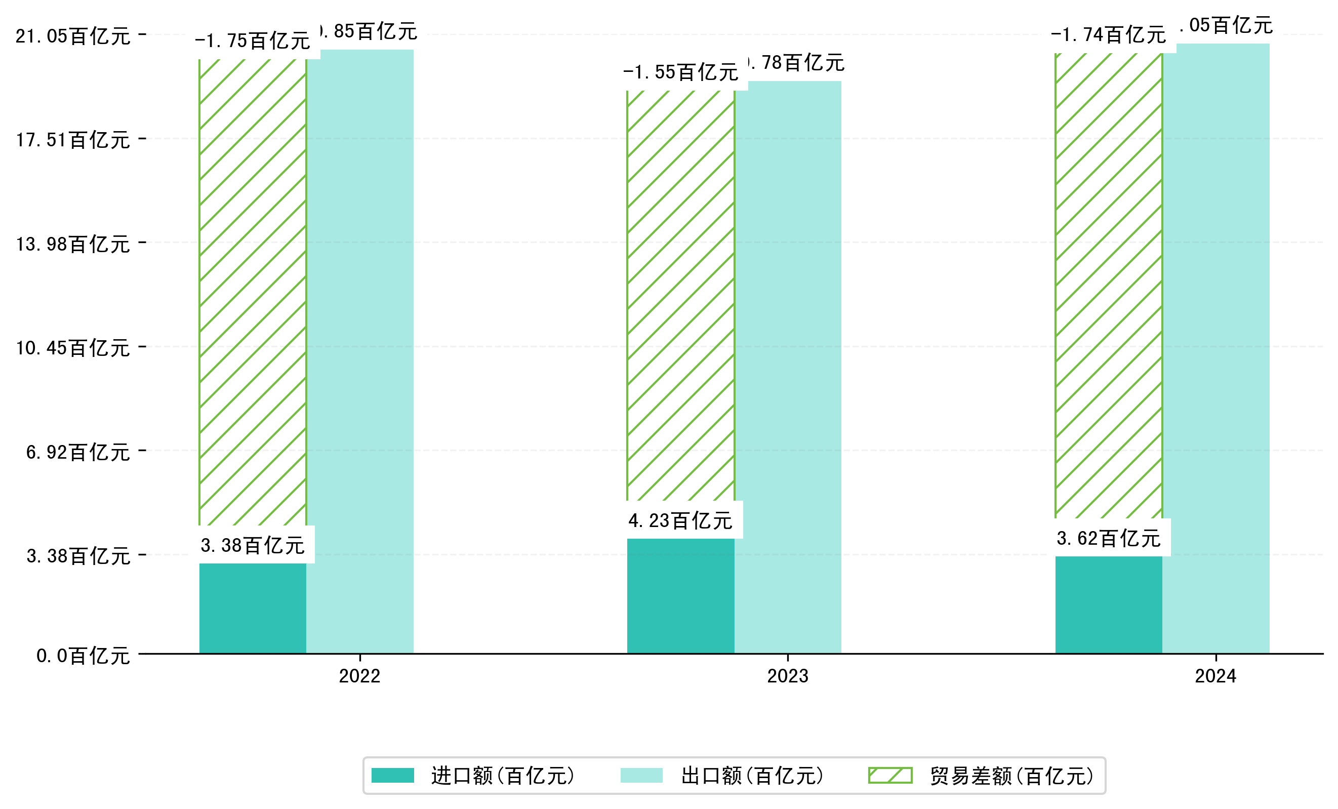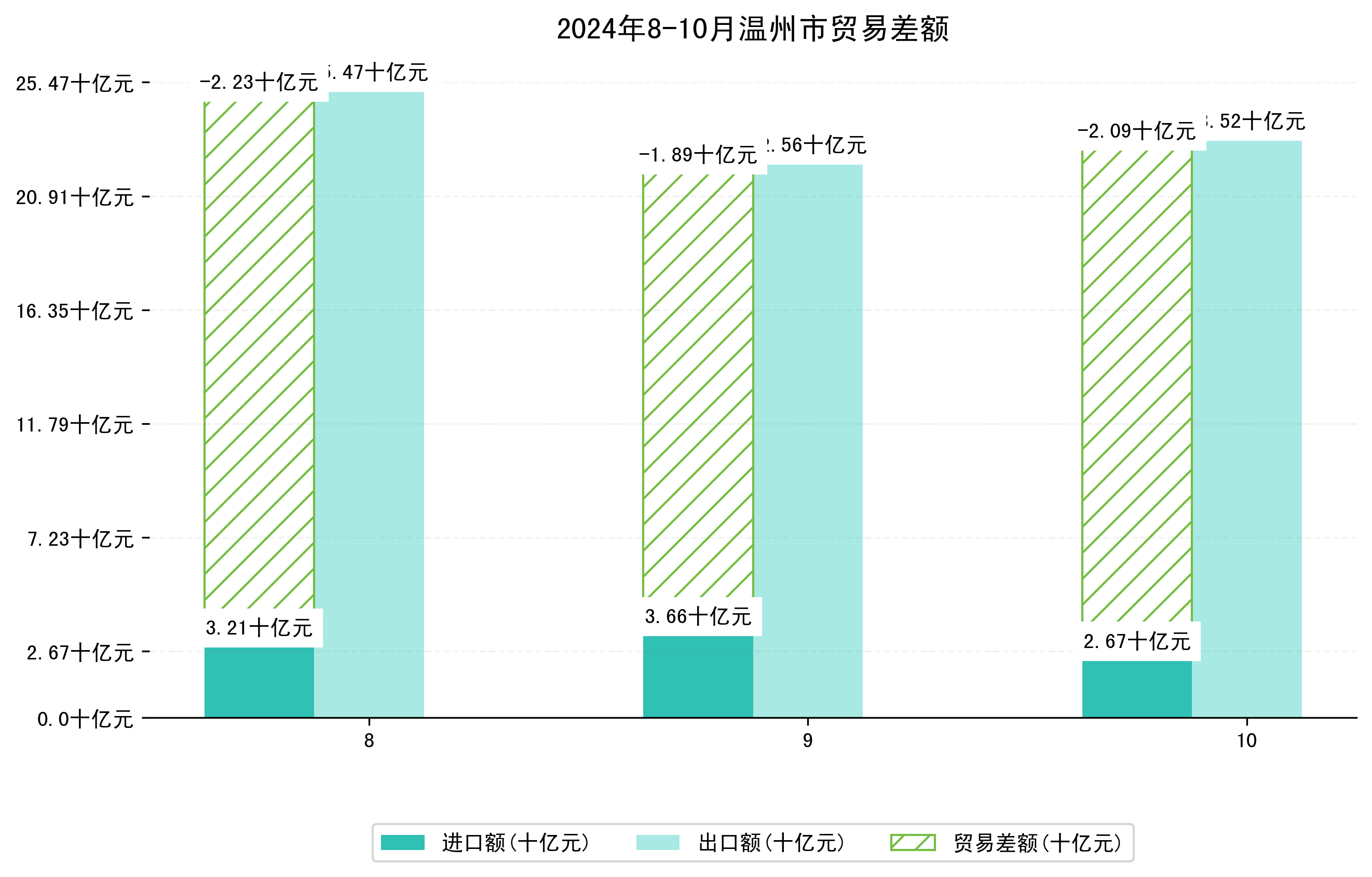 以美元计,2024年1-10月温州市贸易差额为245,0254,1035万美元(贸易顺差),相比上年同期增加了22,3874,4824万美元,同比增加10.06%。