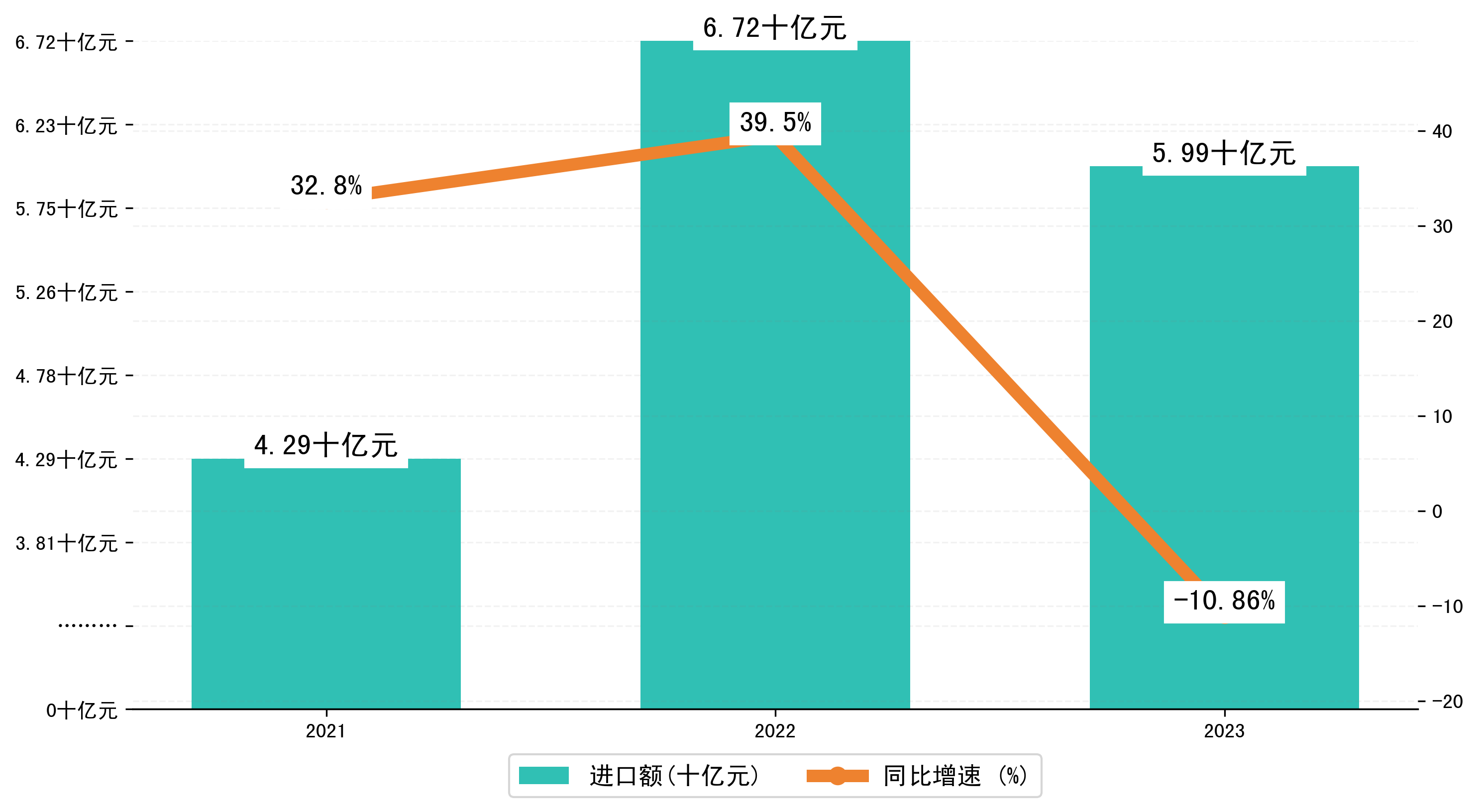 以人民币计,2023年1-2月温州市进口额为59,8790.785万元,相比上年同期减少了7,2914.2009万元,同比减少了-11.10%。