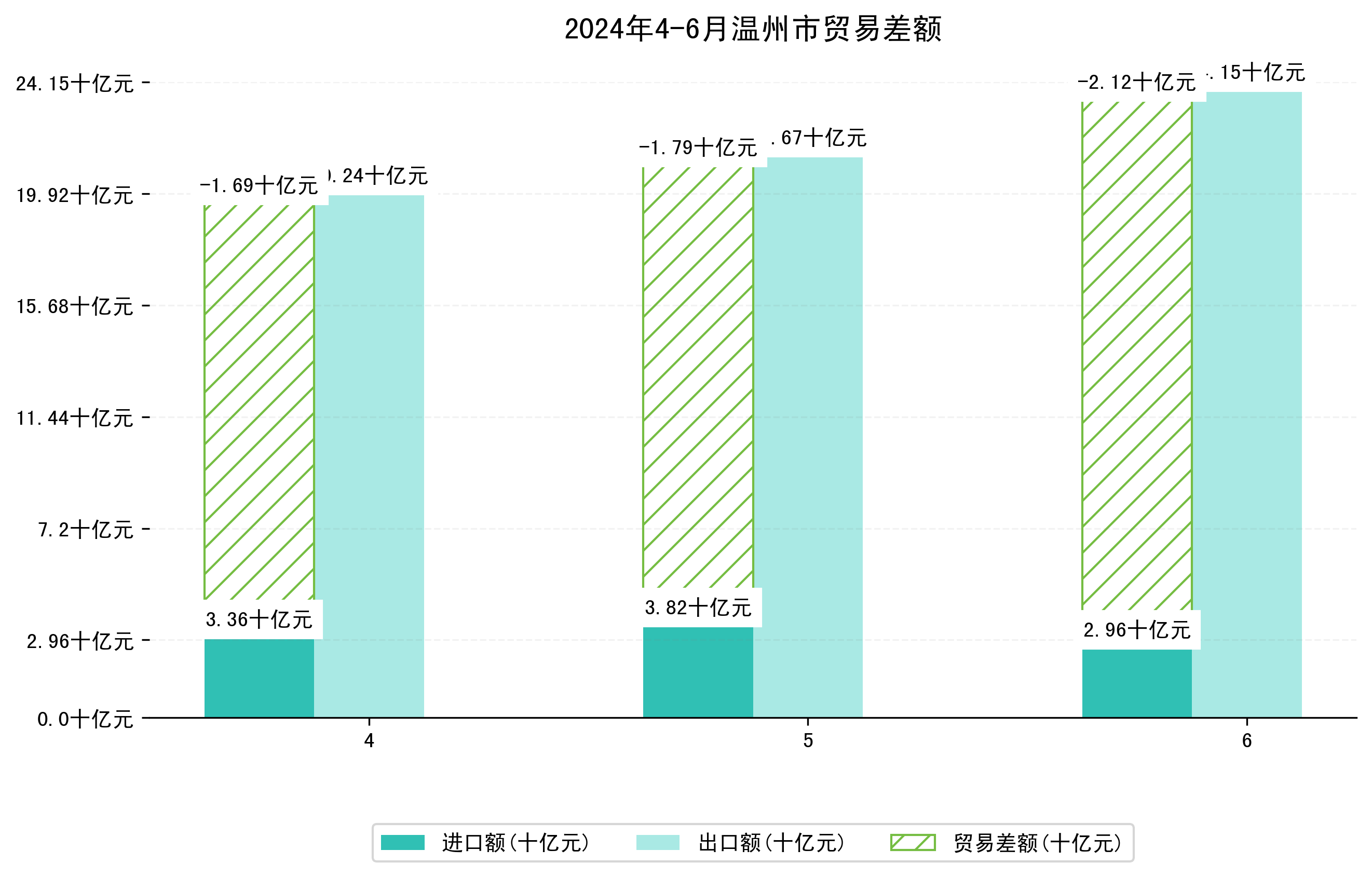 一、2024年6月温州市单月出口总额及进出口差额统计分析