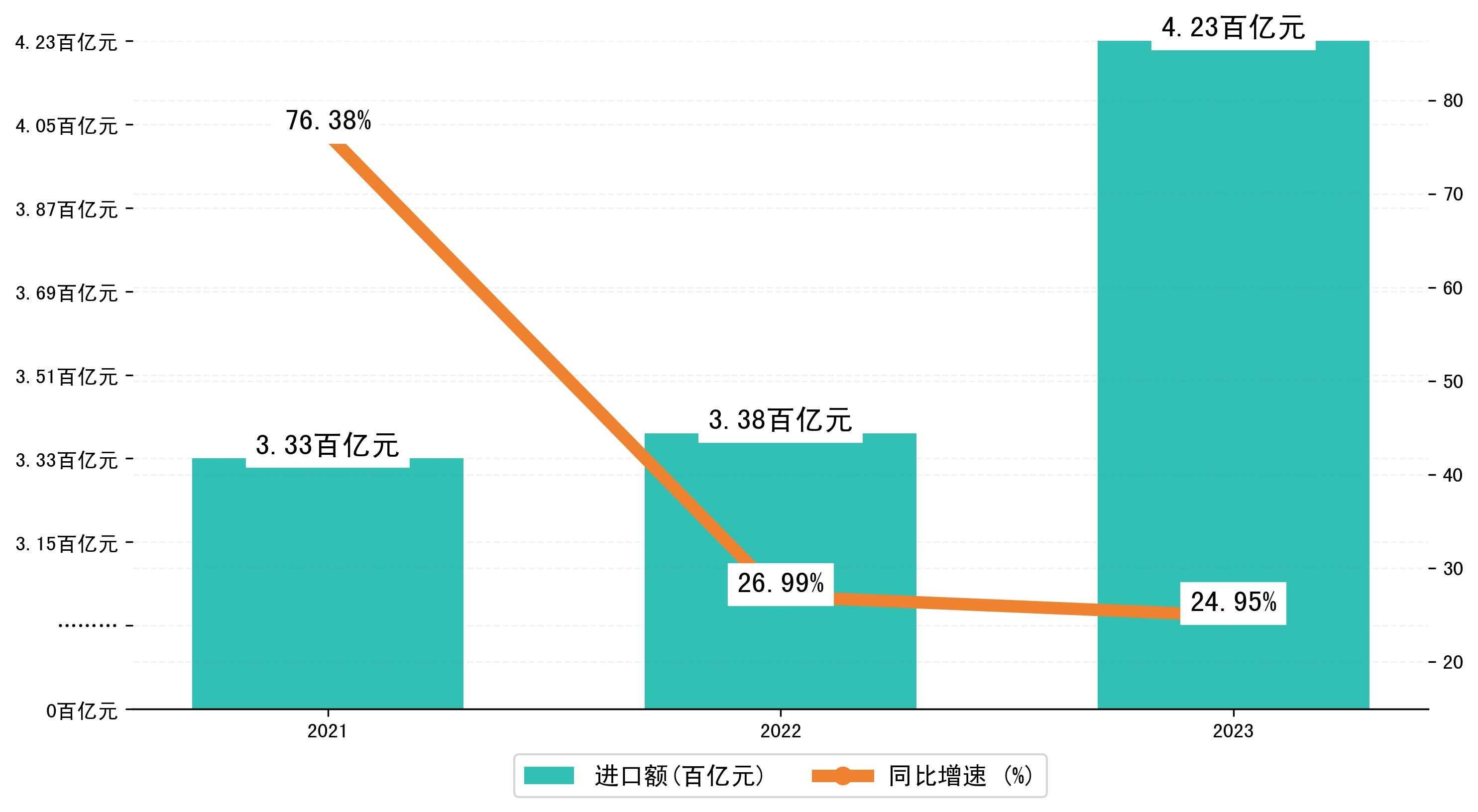 以人民币计,2023年1-10月温州市进口额为422,6278.1238万元,相比上年同期增加了84,3814.8346万元,同比增加了25.50%。