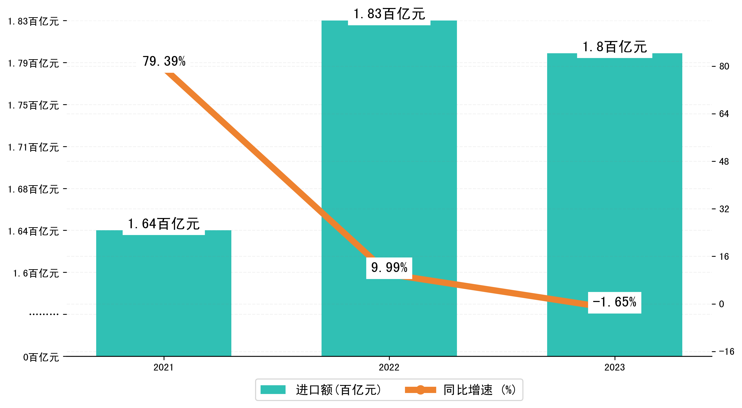 以人民币计,2023年1-5月温州市进口额为179,9973.4441万元,相比上年同期减少了3,0279.1219万元,同比增加了1.20%。